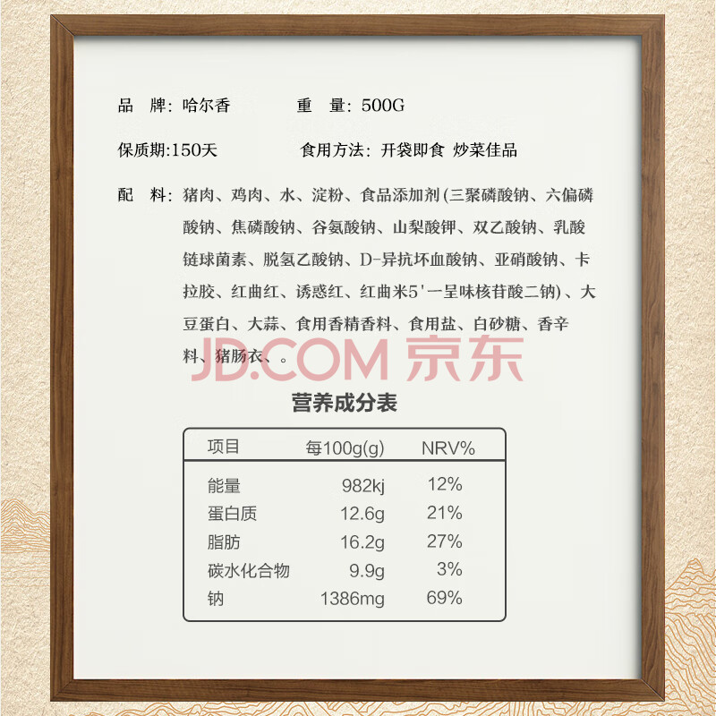 商品名称:哈尔香 哈尔滨红肠 熟食 香肠 火腿肠 500g/袋 东北特产 开袋即食