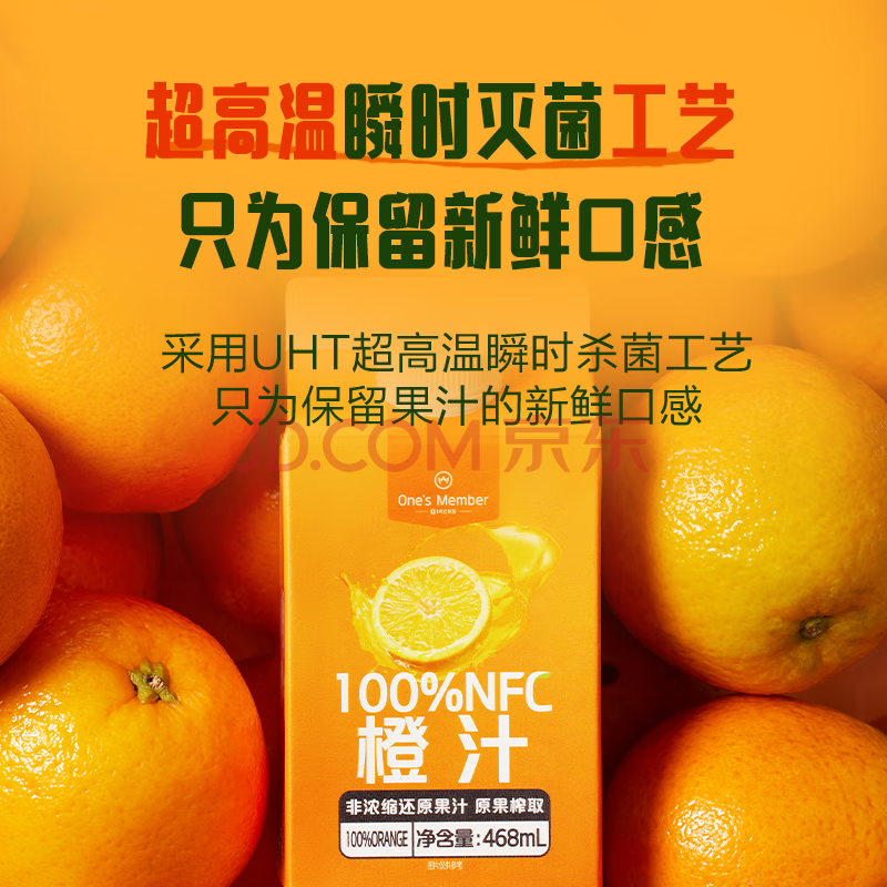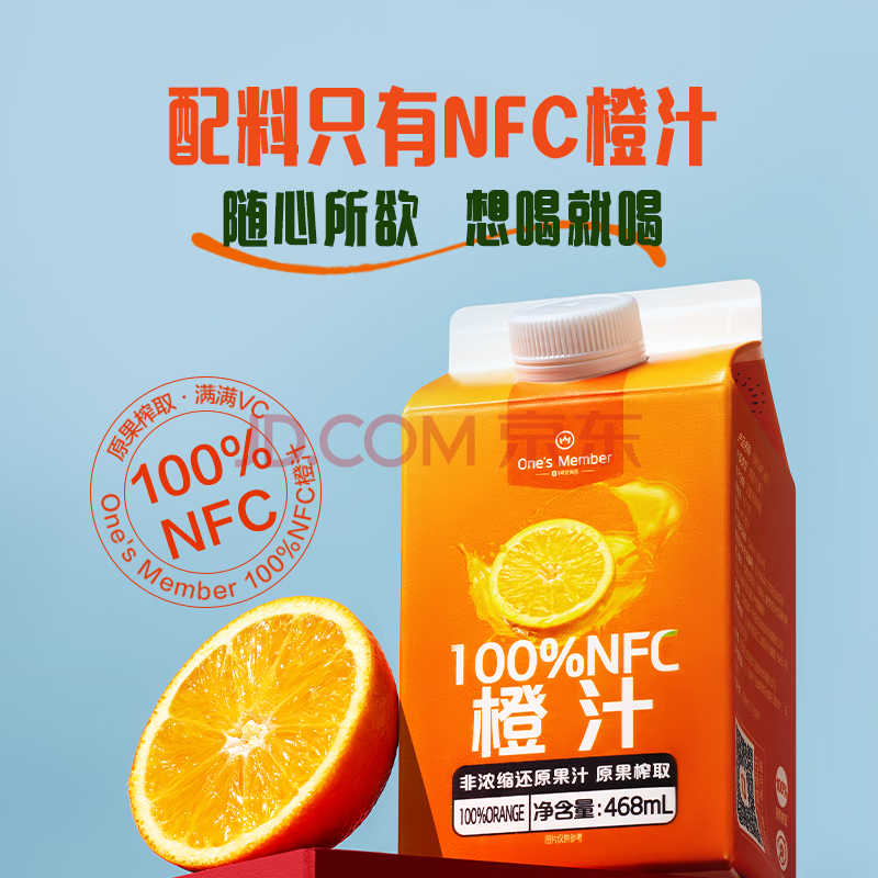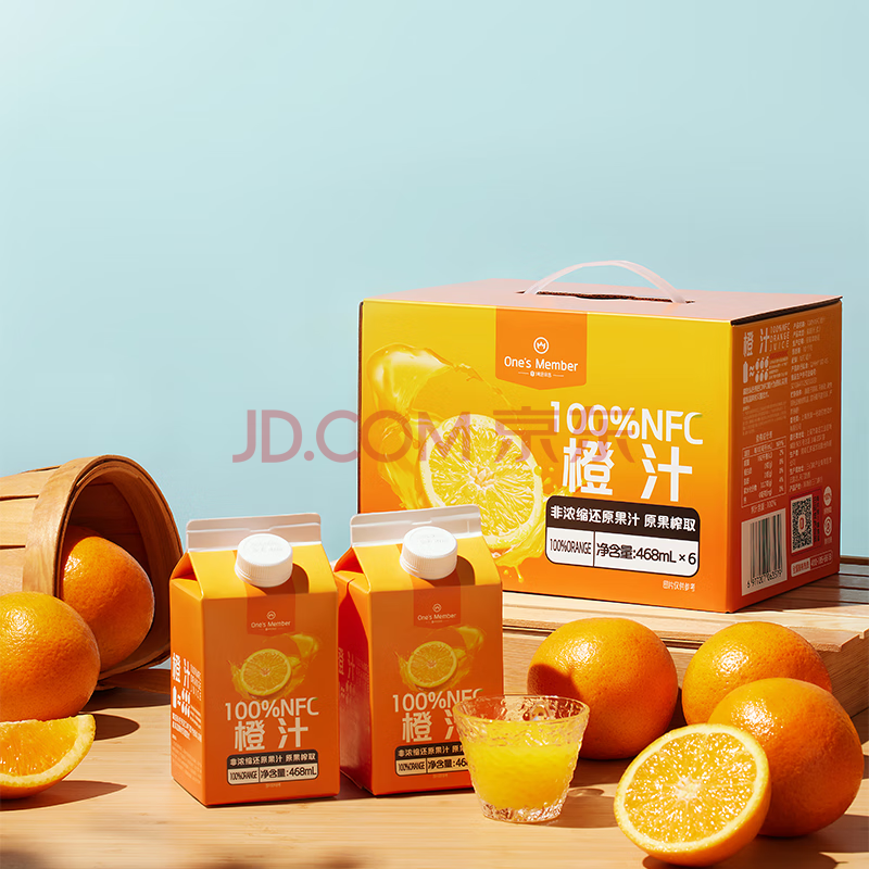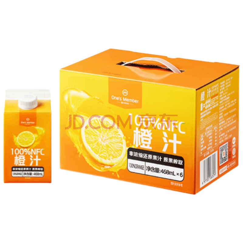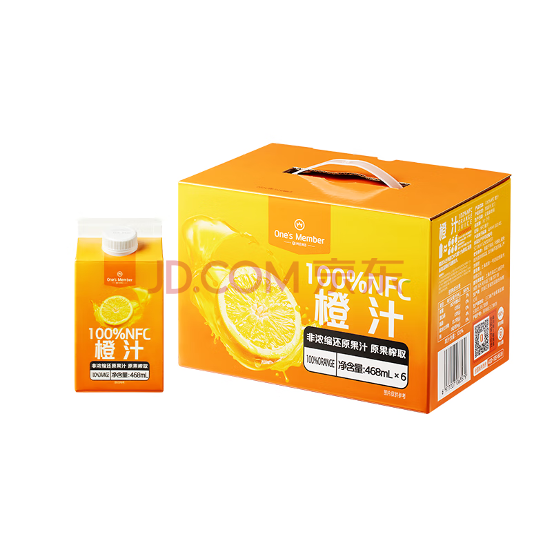 商品名称:1号会员店100%NFC橙汁 0脂0添加纯果蔬汁鲜果水果榨汁饮料468ml*6 礼盒装
