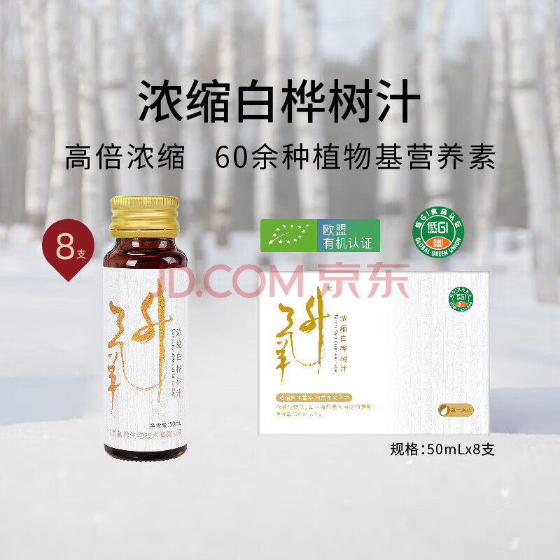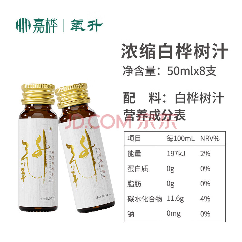 商品名称:嘉桦浓缩白桦树汁天然氧升100%饮料饮品高倍浓缩原汁原液50ML*8瓶