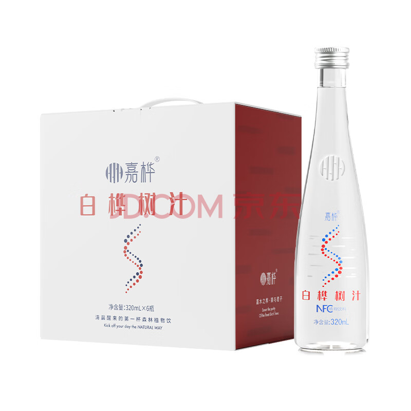 嘉桦白桦树汁原汁100%NFC原液欧盟有机认证小兴安岭饮品饮料320ML*6瓶