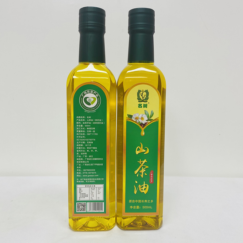 商品名称:凌云名树名树压榨一级山茶油500ml*2瓶/盒/PC
