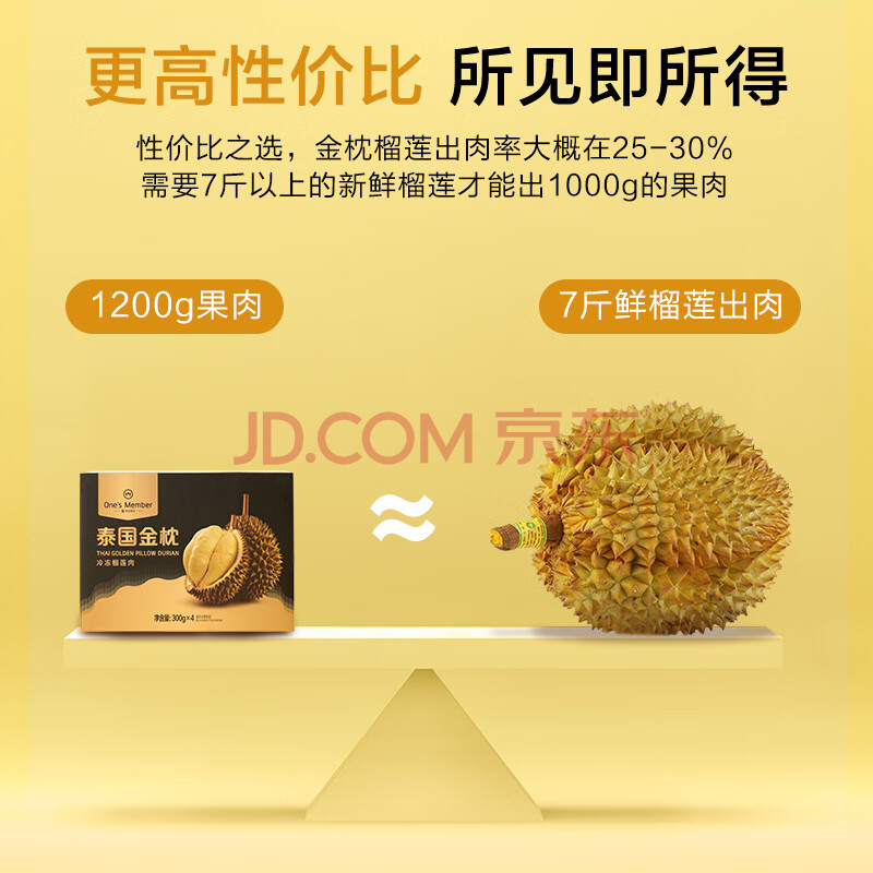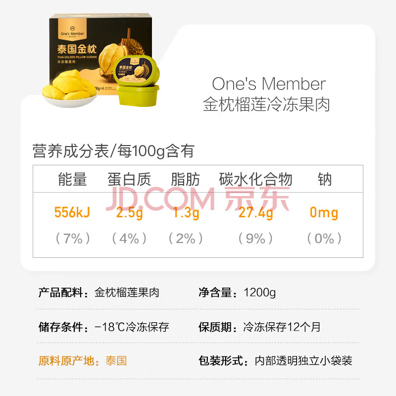 商品名称:1号会员店泰国冷冻金枕榴莲果肉300g*4盒新鲜榴莲生鲜水果礼盒