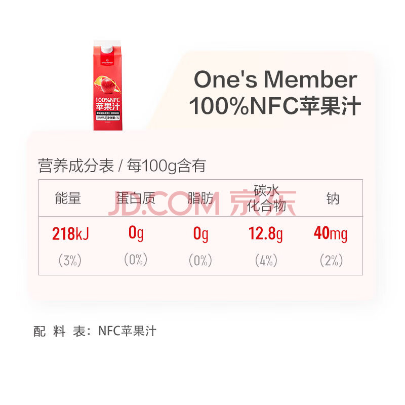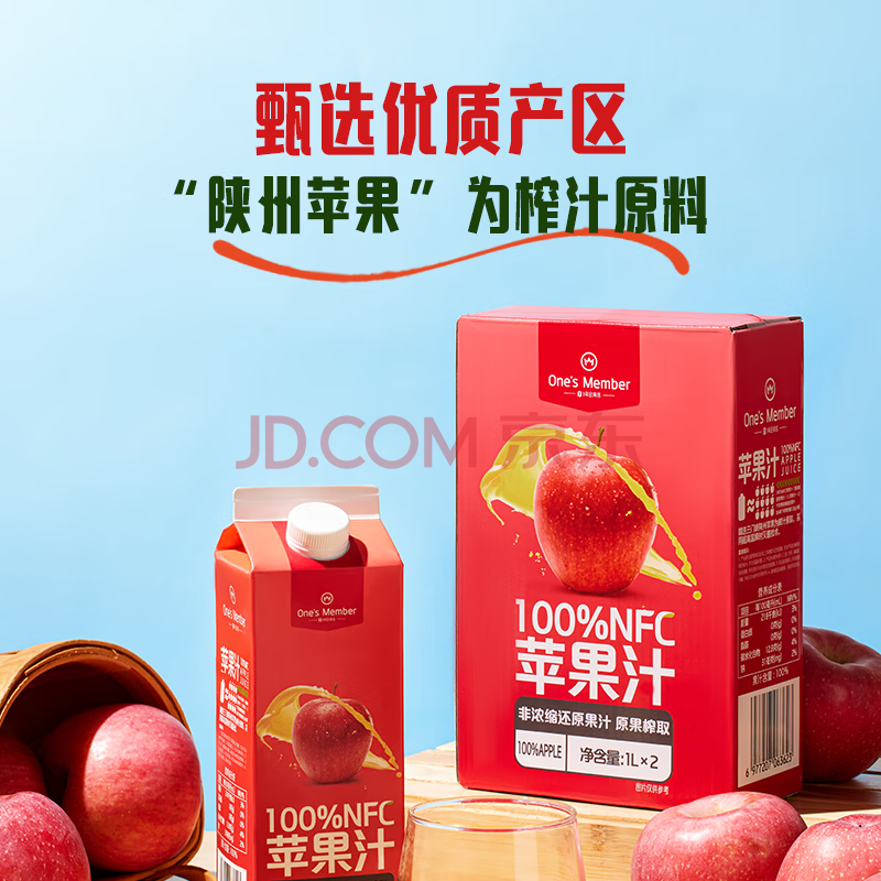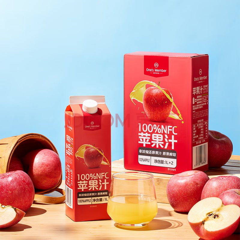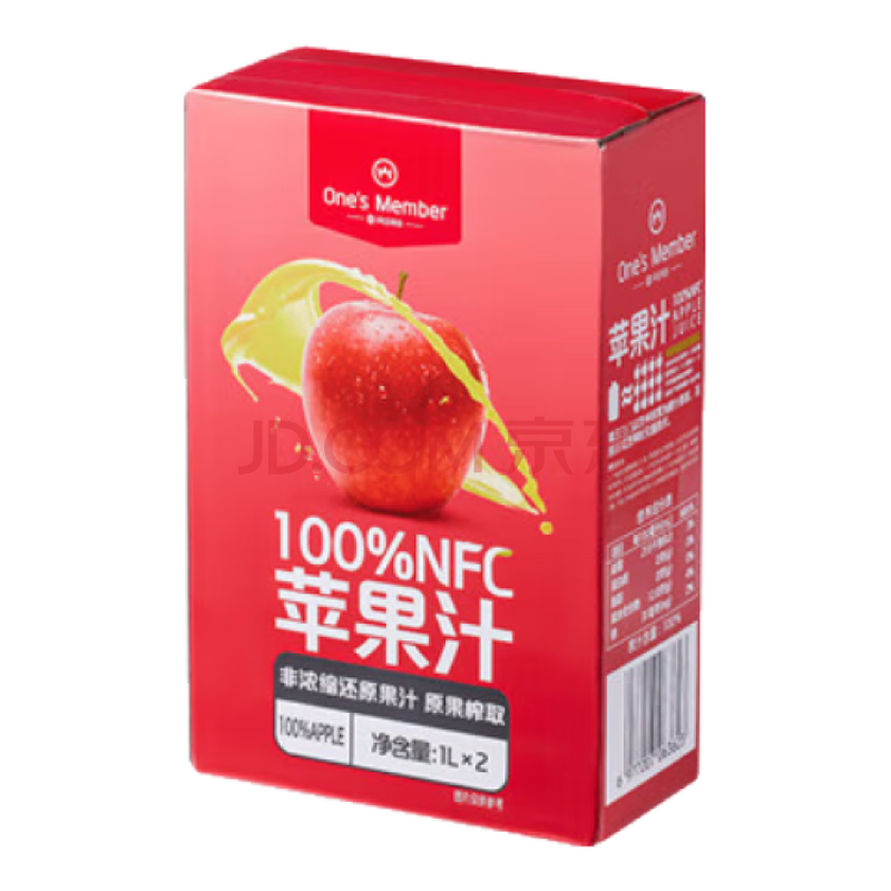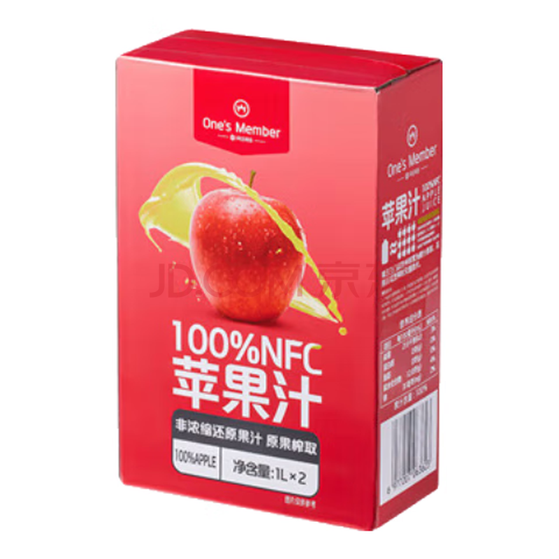 商品名称:1号会员店100%NFC苹果汁 0脂0添加纯果蔬汁鲜果水果榨汁饮品饮料1L*2整箱装