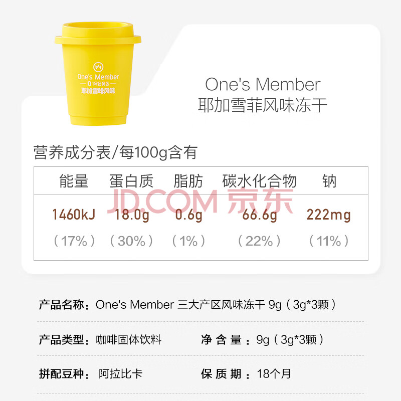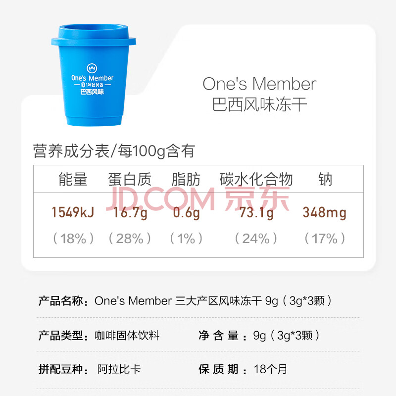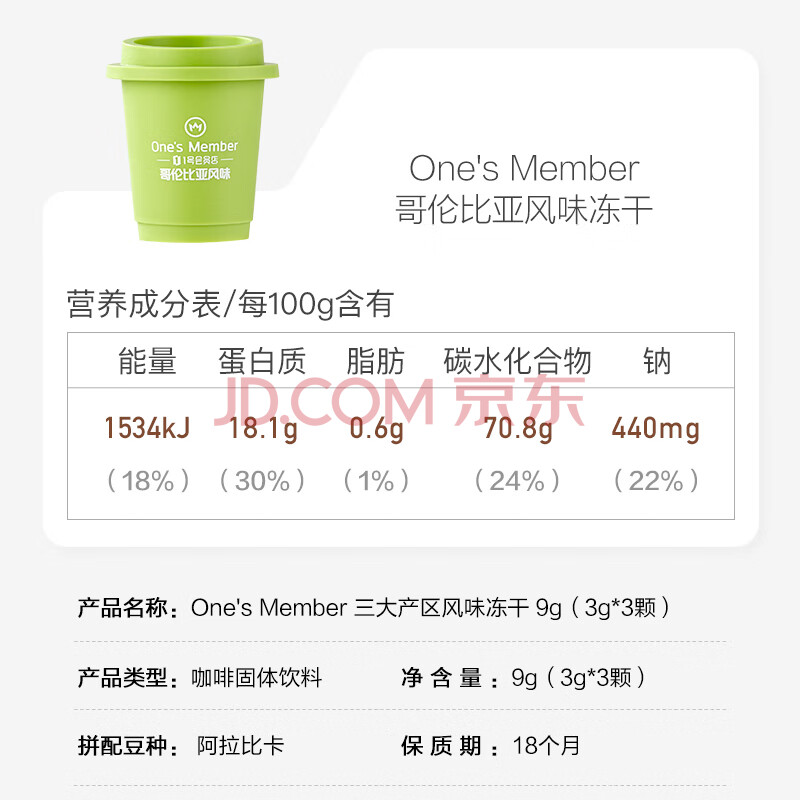 商品名称:One's Member三种风味速溶咖啡冻干美式拿铁混合装3g*3颗健身运动减脂
