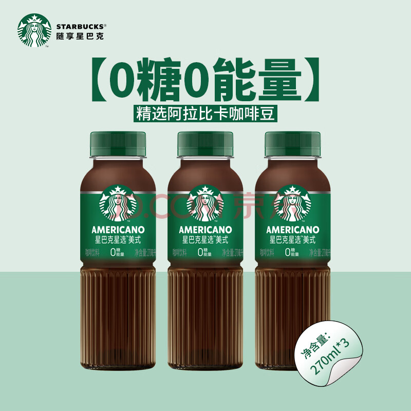 商品名称:星巴克星选即饮咖啡美式咖啡270ml*3无糖饮料健身提神满4件赠粉粉生咖*1
