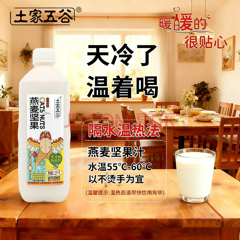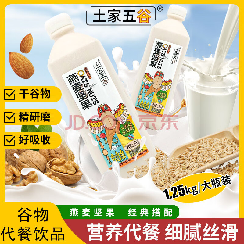 > 土家五谷燕麦坚果汁1.25kg大瓶装0防腐剂轻食营养低脂代餐燕麦奶聚餐饮料
