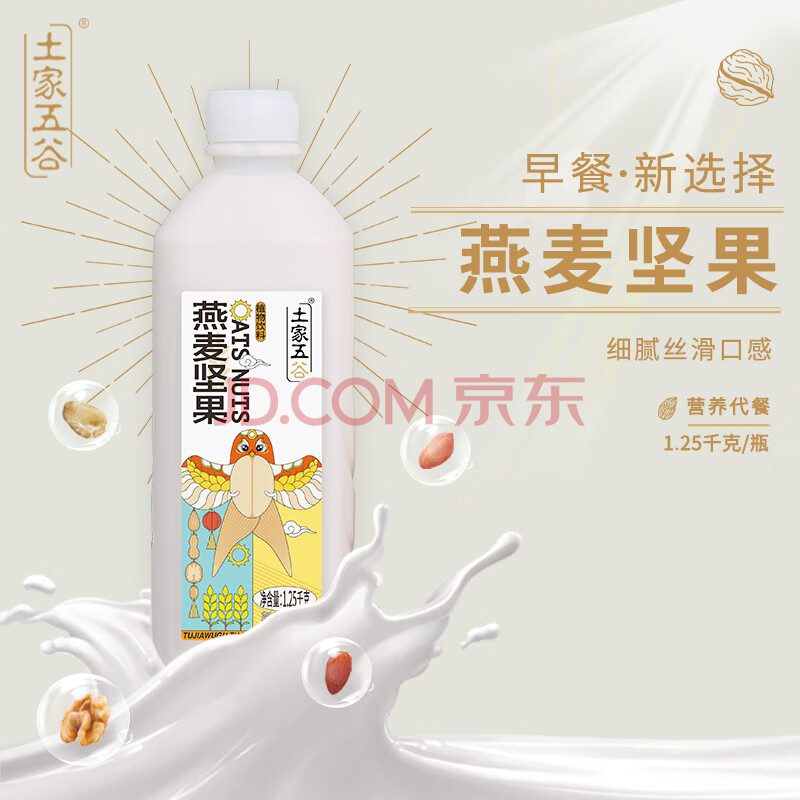 商品名称:土家五谷燕麦坚果汁1.25kg大瓶装0防腐剂轻食营养低脂代餐燕麦奶聚餐饮料