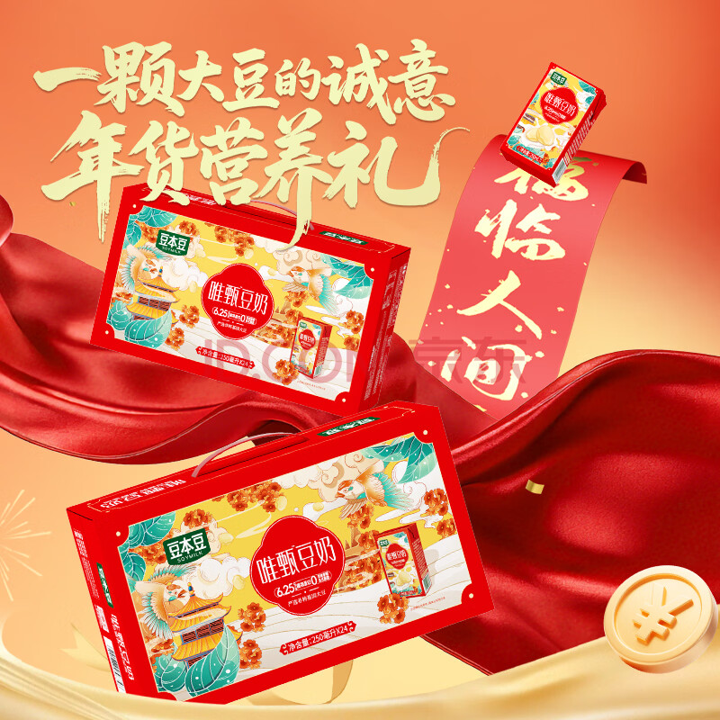 > 豆本豆唯甄豆奶250ml*24盒植物蛋白饮料营养儿童学生早餐奶团购年货礼盒