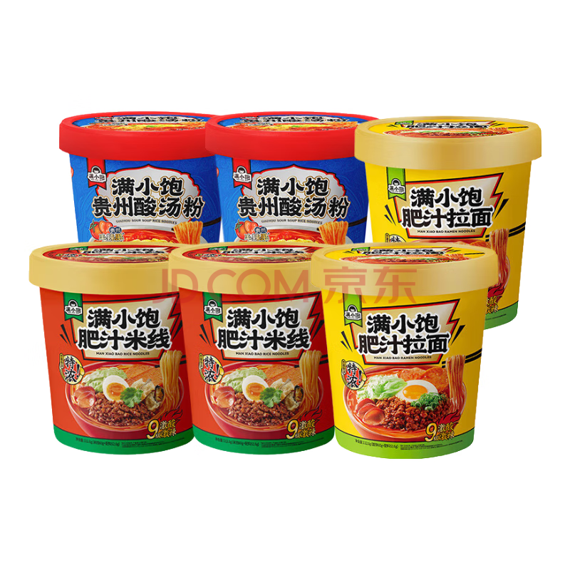 商品名称:满小饱桶装酸汤粉122g*2桶+肥汁米线112.6g*2桶+拉面112.6g*2桶方便速食
