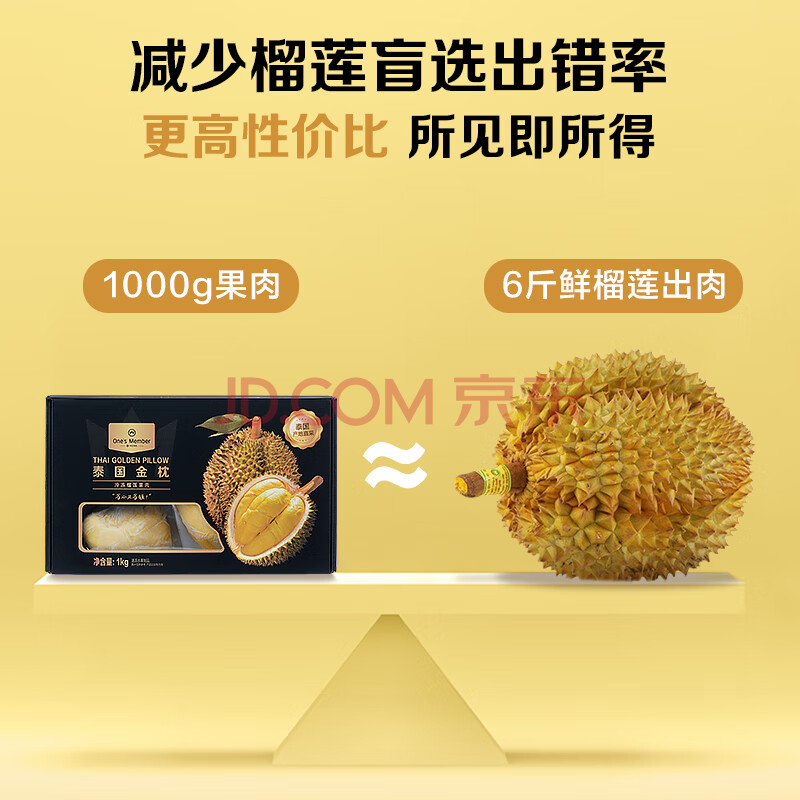 商品名称:1号会员店泰国冷冻金枕榴莲肉1000g/盒独立单袋装生鲜水果礼盒