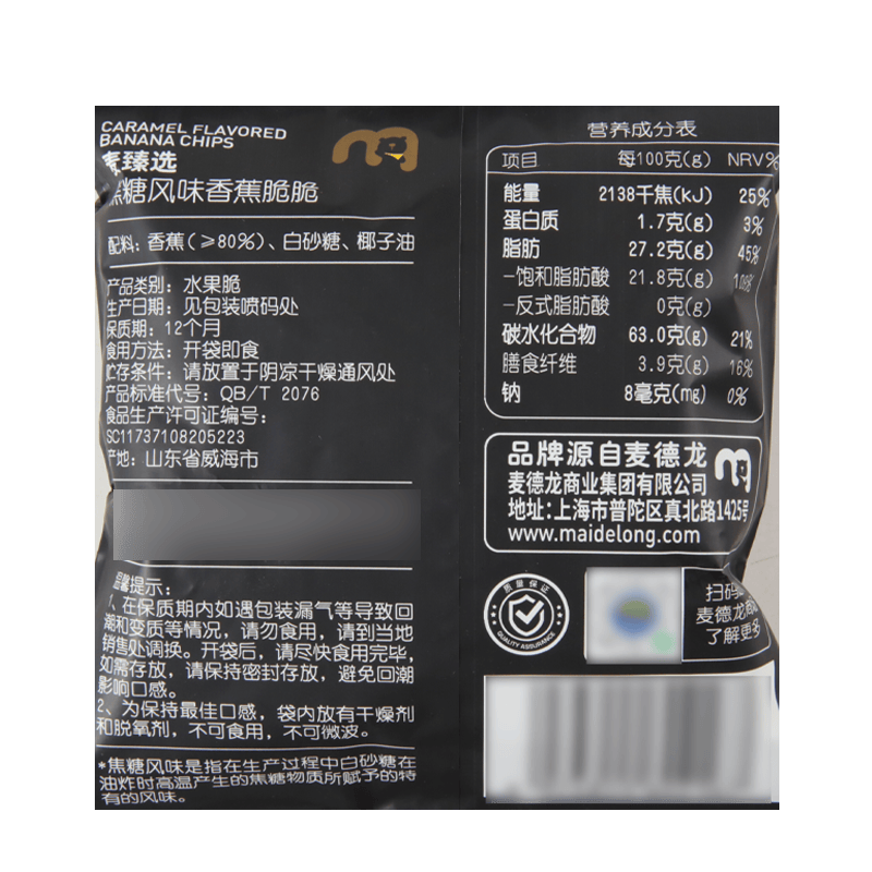 商品名称:麦臻选焦糖香蕉脆脆 280g