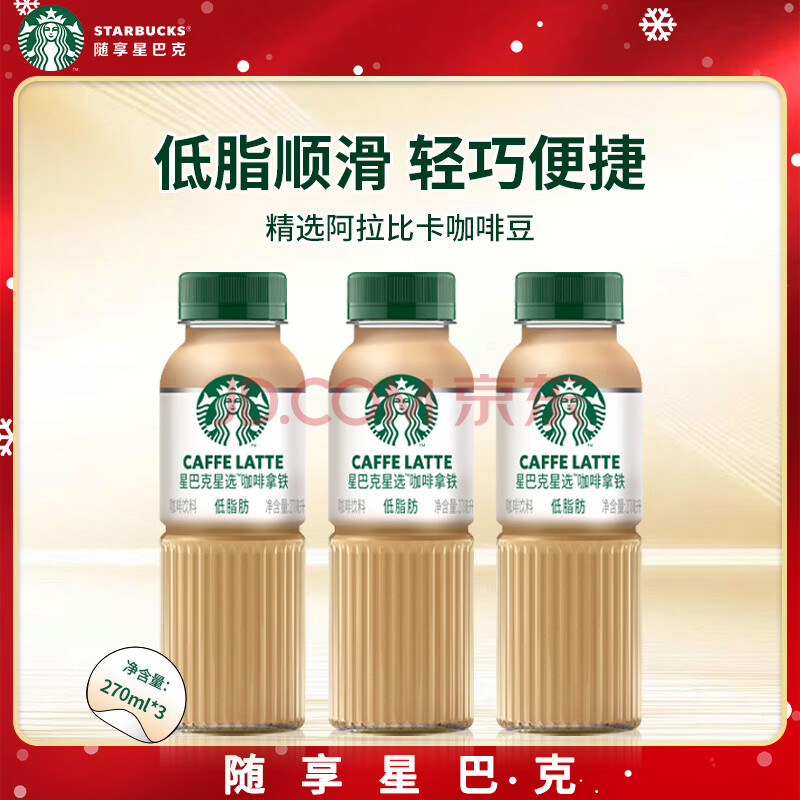 商品名称:星巴克星选咖啡拿铁270ml*3瓶装低脂出行饮料加班提神