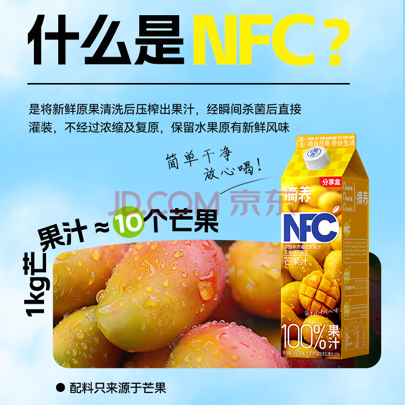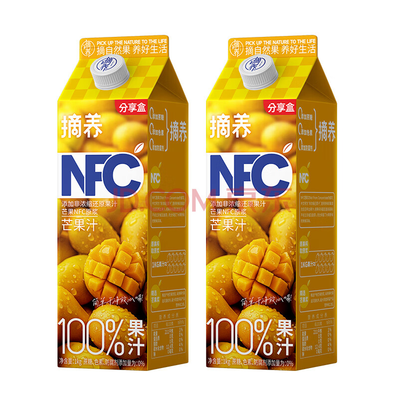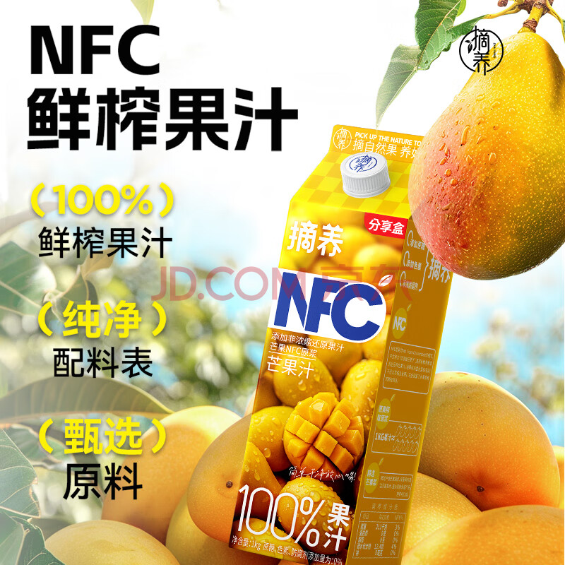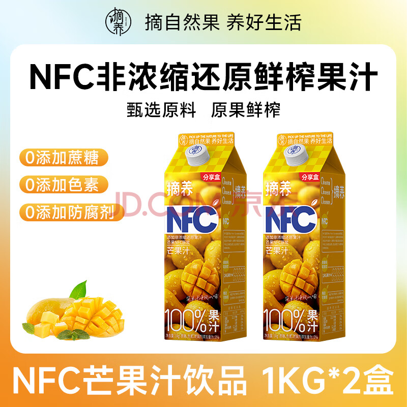 商品名称:摘养100%NFC芒果汁1kg*2 过节送礼婚宴聚会饮料鲜榨果汁饮品