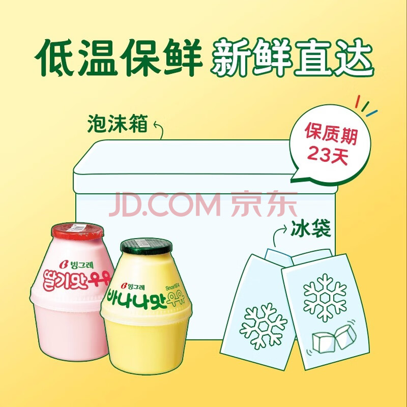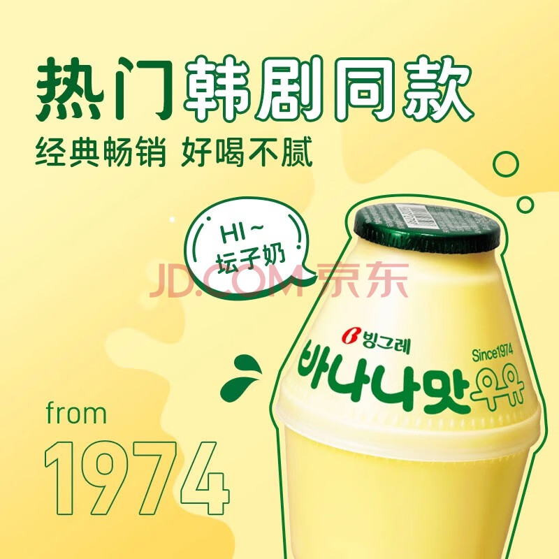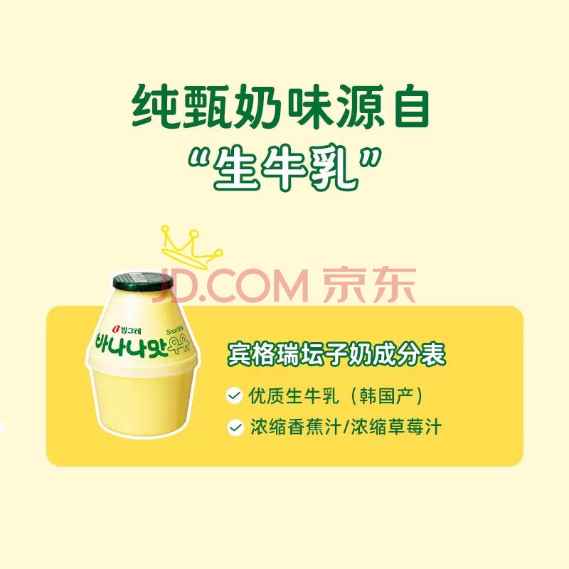 宾格瑞韩国原装进口香蕉牛奶坛子奶饮料低温冷藏238ml*8瓶源头直发包邮