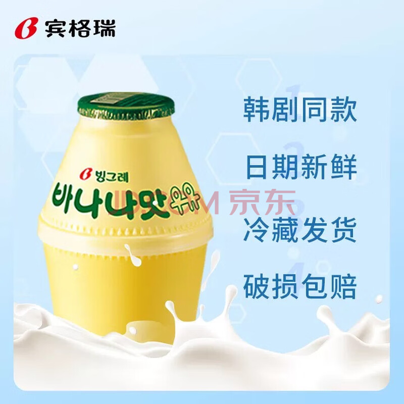 商品名称:宾格瑞韩国原装进口香蕉牛奶坛子奶饮料低温冷藏238ml*8瓶源头直发包邮