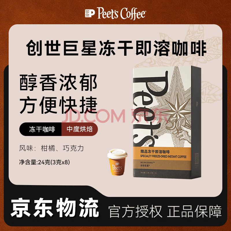 商品名称:皮爷咖啡皮爷peets冻干即溶咖啡(创世巨星)固体饮料黑咖美式24g(3g*8)