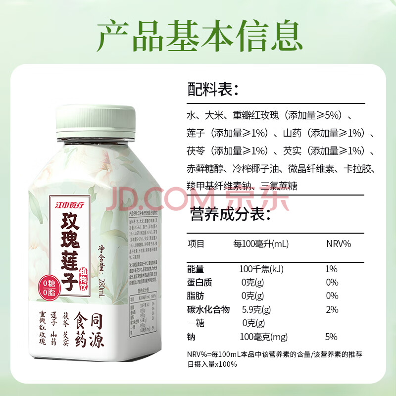 商品名称:江中食疗玫瑰莲子植物饮料280ml*10瓶 0糖0脂减脂轻食养胃代餐礼盒送礼