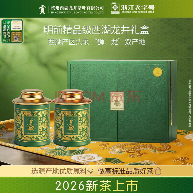 > 贡牌2026新茶上市 绿茶西湖龙井茶精品级250g明前礼盒装源头直发