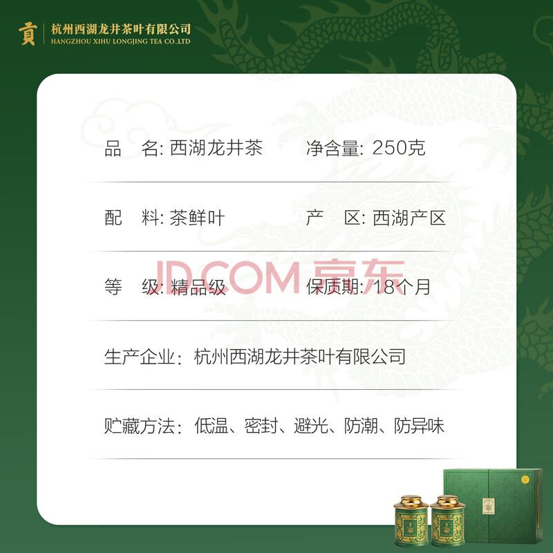 商品名称:贡牌2026新茶上市 绿茶西湖龙井茶精品级250g明前礼盒装源头直发