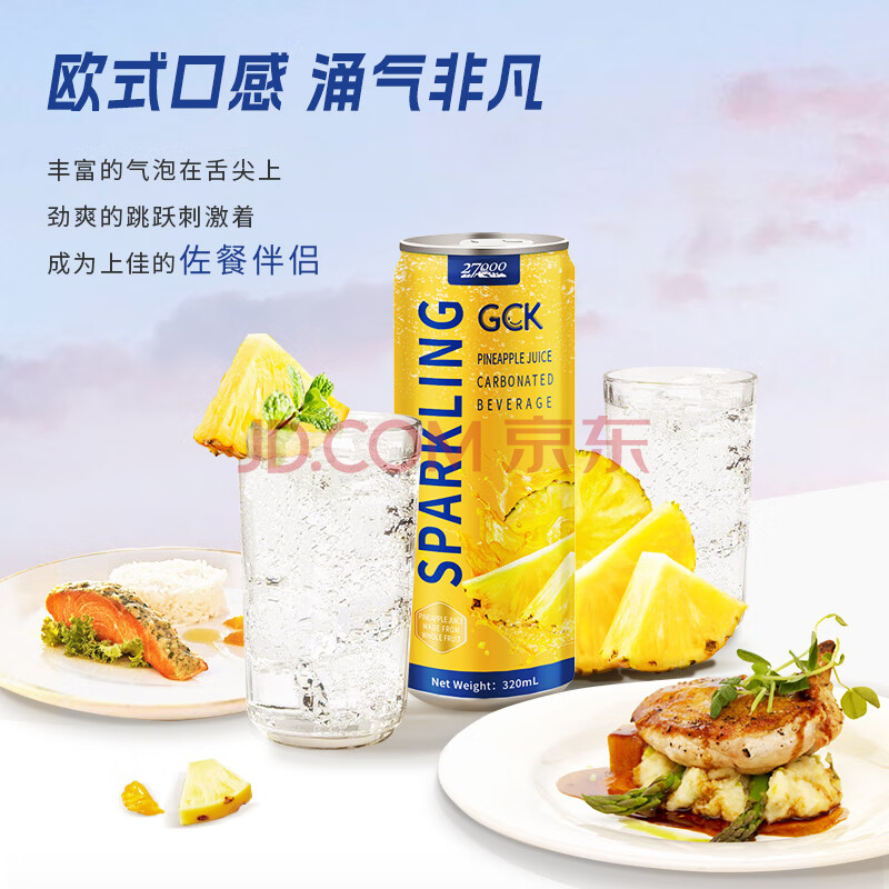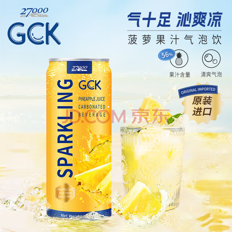 > 27000GCK 原装进口菠萝气泡果汁饮料 320ml*12支 菠萝气泡水 火锅搭子
