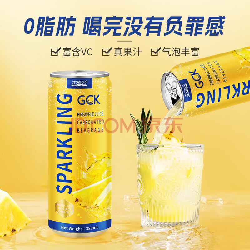 27000GCK 原装进口菠萝气泡果汁饮料 320ml*12支 菠萝气泡水 火锅搭子
