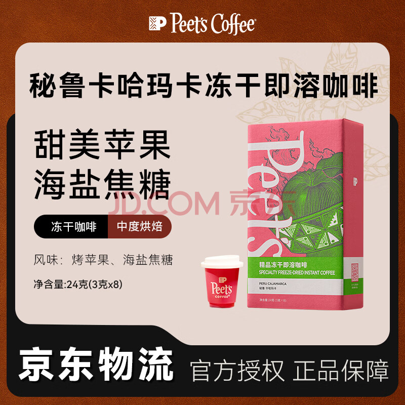 商品名称:皮爷咖啡皮爷peets 精品冻干即溶咖啡(秘鲁 卡哈玛卡)固体饮料24g(3g*8)