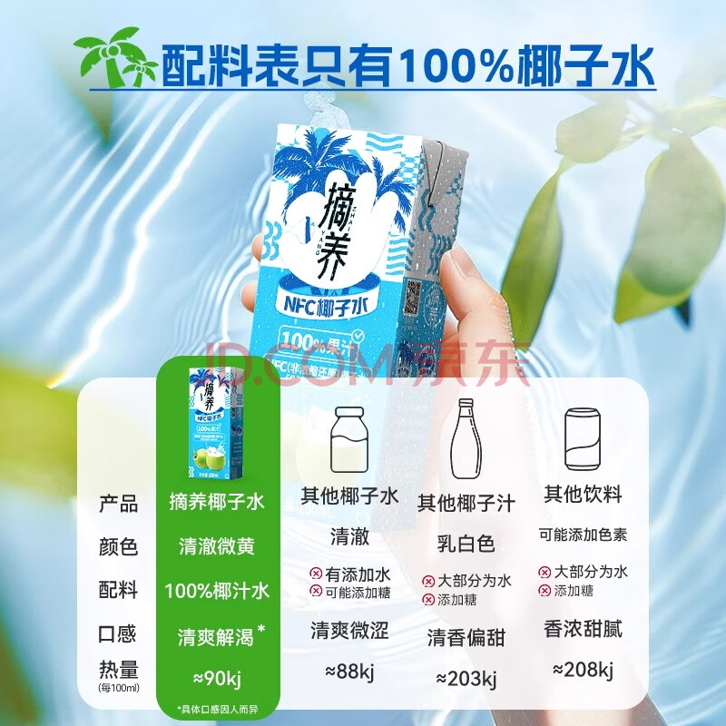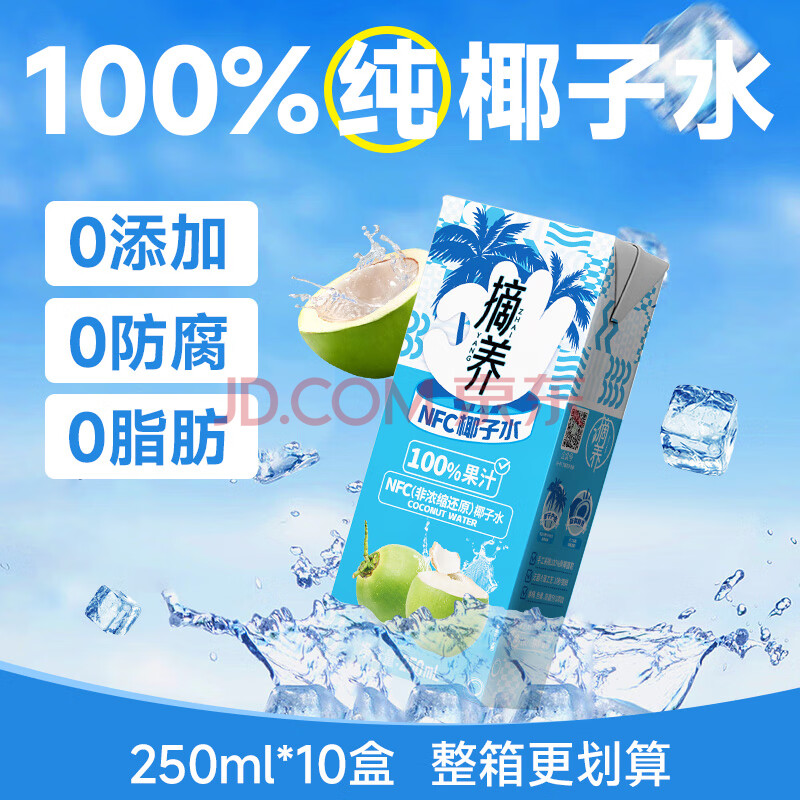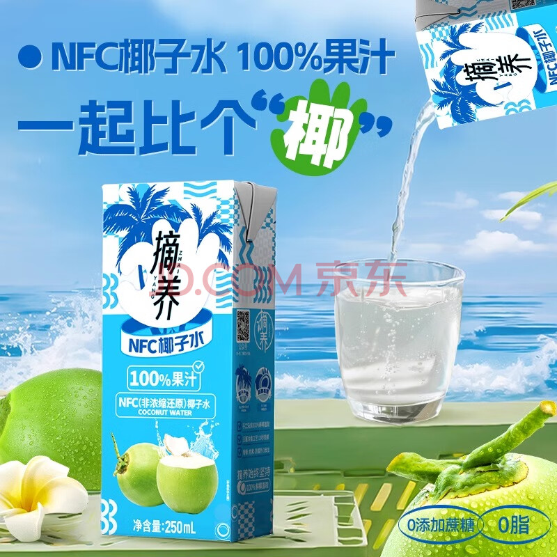 商品名称:摘养NFC100%纯椰子水电解质孕妇椰青饮料250ml*10瓶