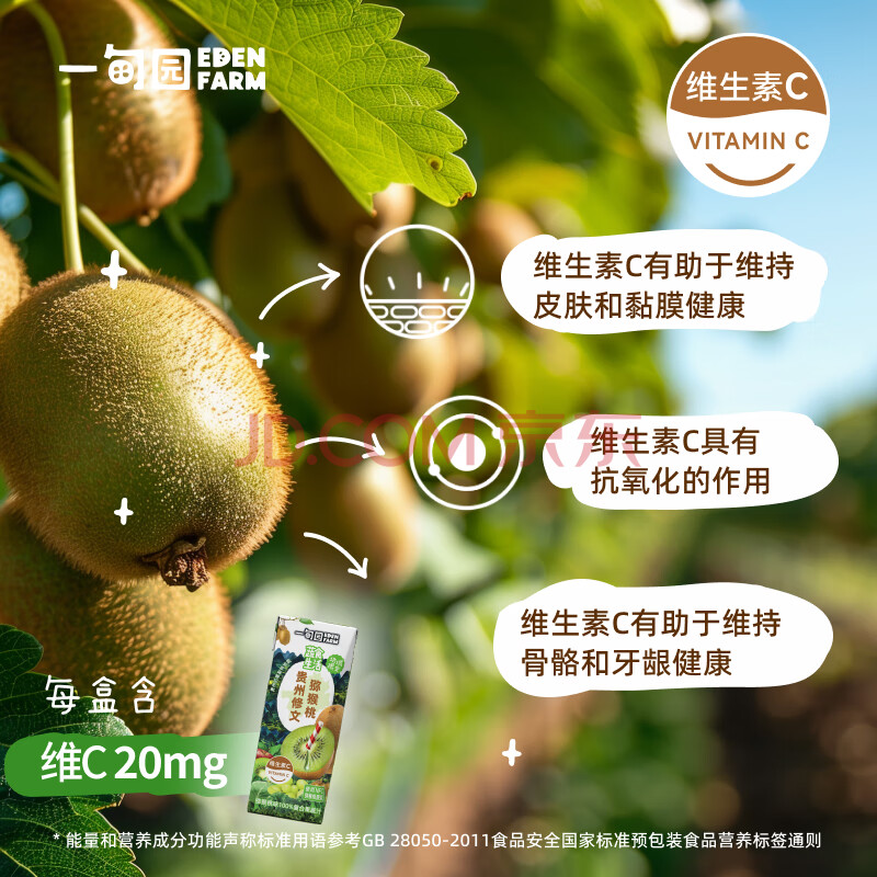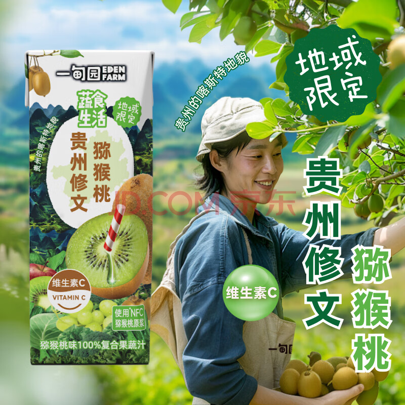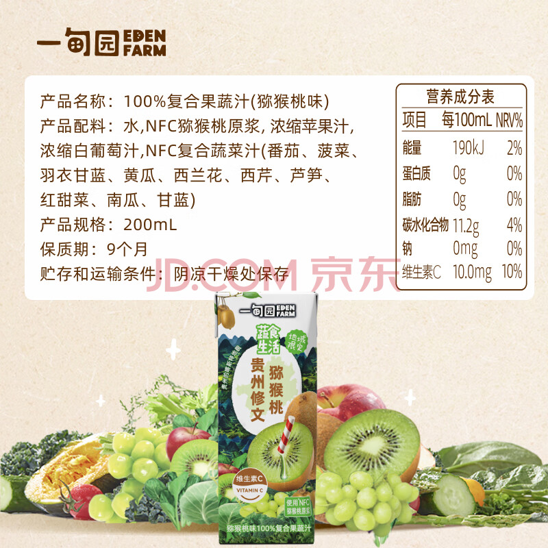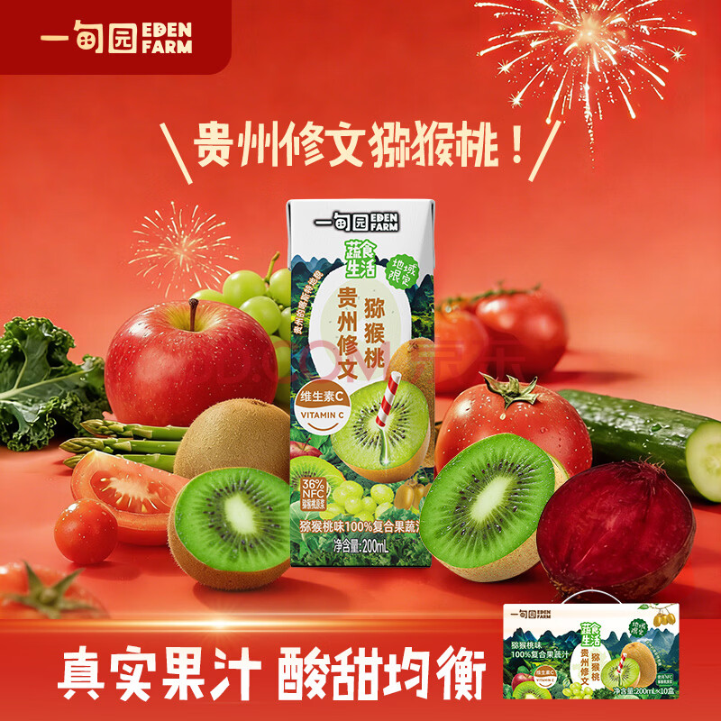 商品名称:一甸园100%猕猴桃味复合果蔬汁饮料蔬菜果汁维c健康饮品小瓶200ml*10盒