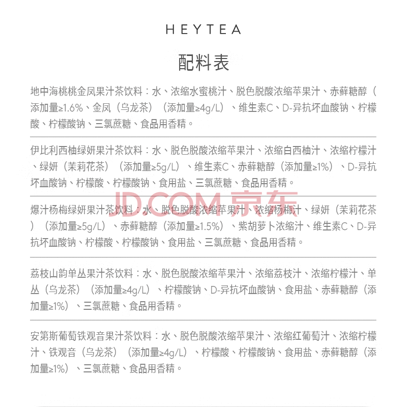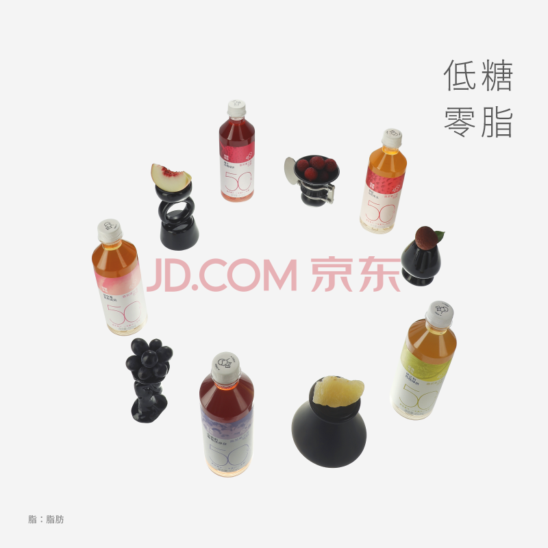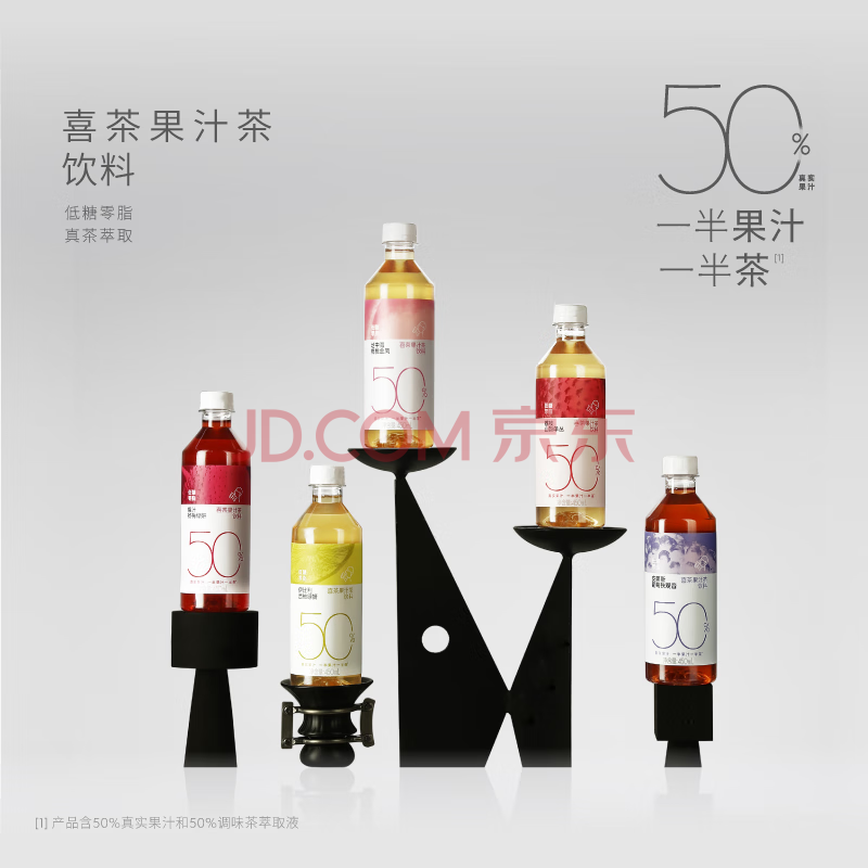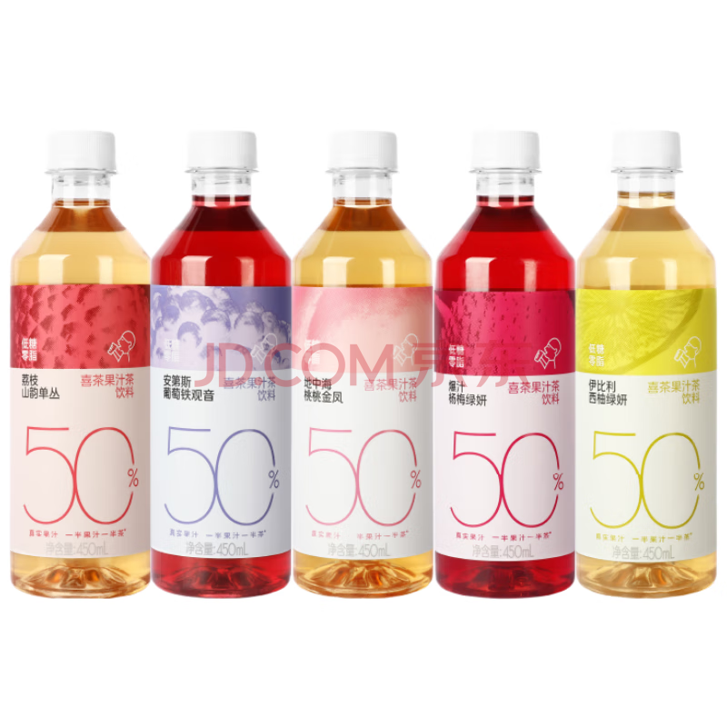 商品名称:喜茶50%果汁茶5口味混合装450ml*5瓶 低糖0脂 果汁茶饮料整箱