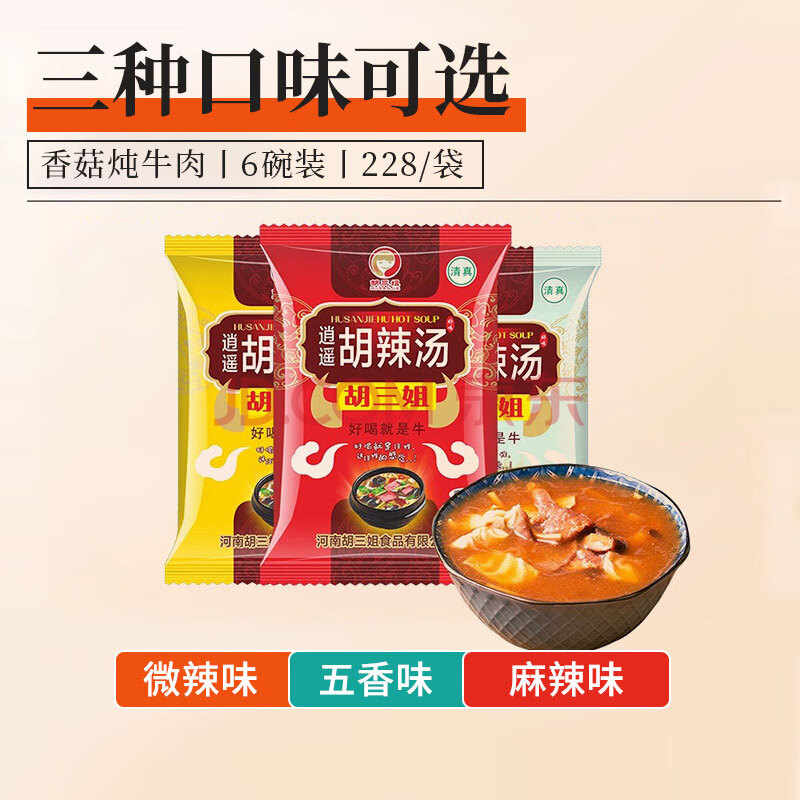 胡三姐 胡辣汤河南特产五香牛肉味228g*6包 方便速食清真早餐酸辣速食汤