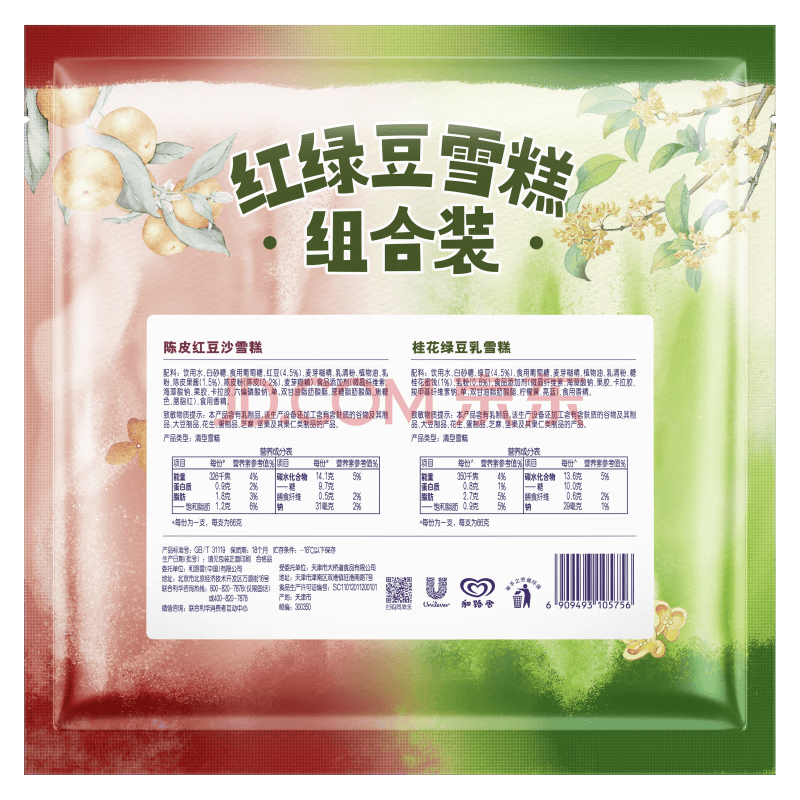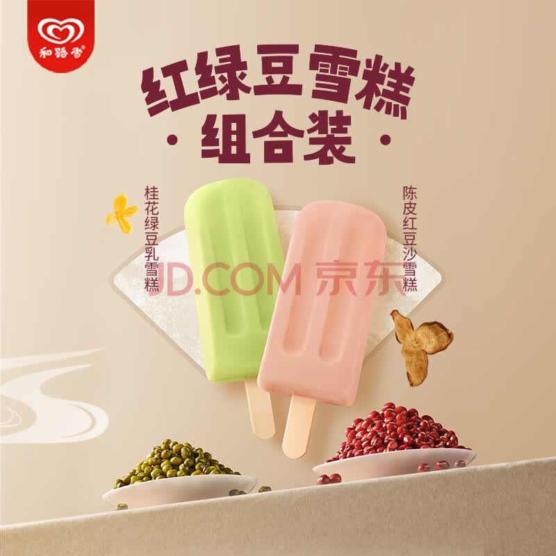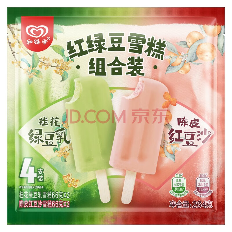 商品名称:和路雪陈皮红豆沙66g*2支+桂花绿豆乳雪糕 冰淇淋 冰激凌 66g*2支