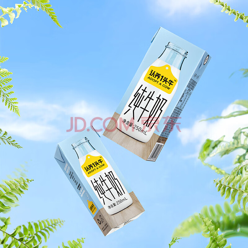 认养一头牛儿童学生早餐纯奶全脂纯牛奶250ml*12盒 *2提(包装随机发)