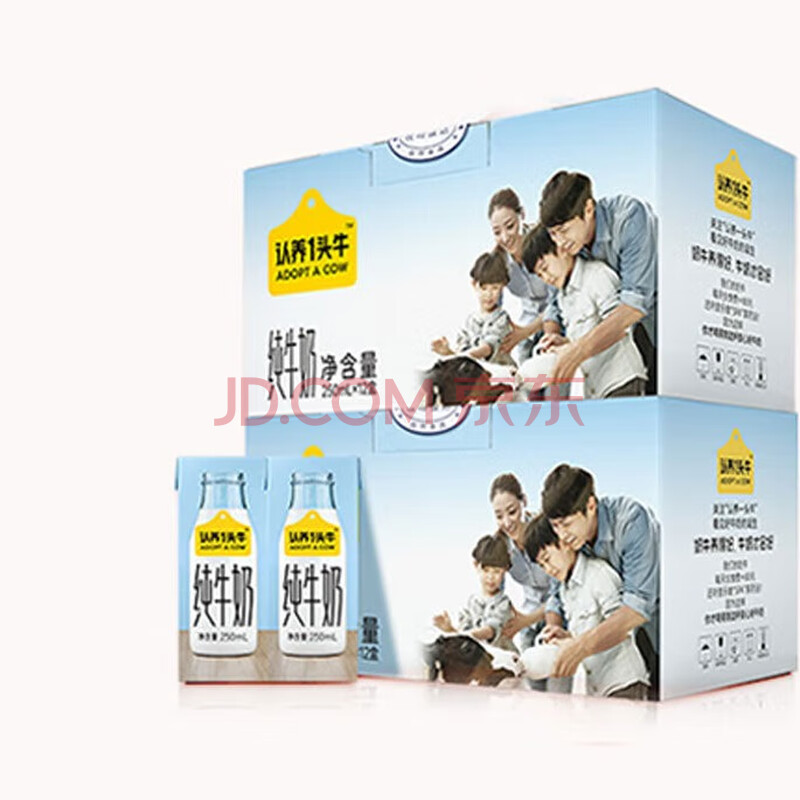 > 认养一头牛儿童学生早餐纯奶全脂纯牛奶250ml*12盒 *2提(包装随机发)