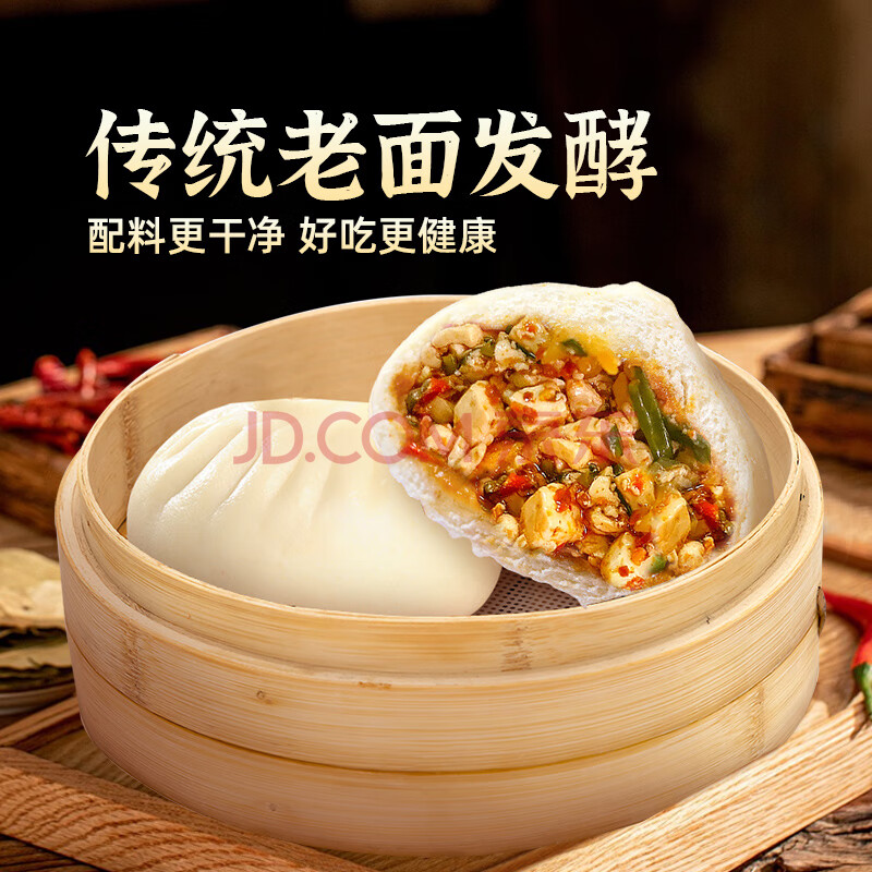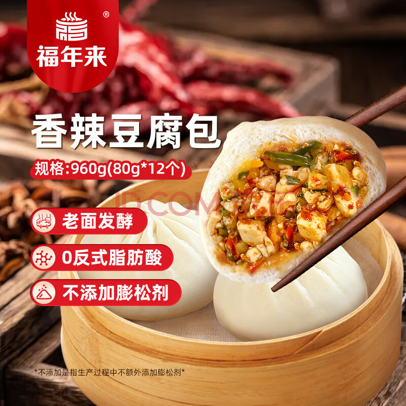 商品名称:福年来老面香辣豆腐包子960g 12个早餐面点方便速食家庭年货生鲜