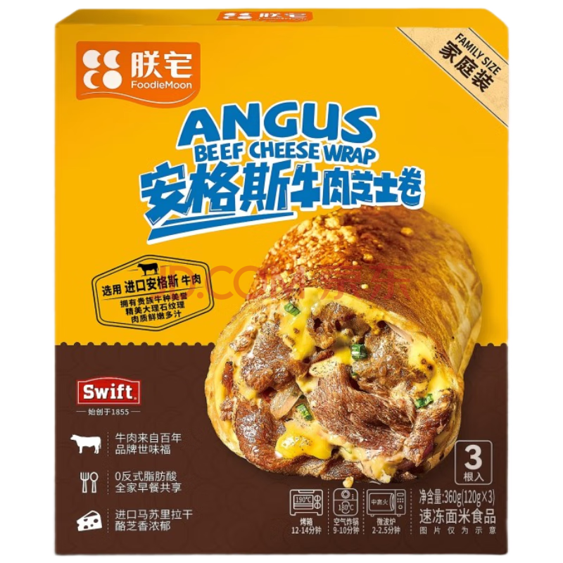 商品名称:朕宅 安格斯牛肉芝士卷 120g*3 早餐半成品微波加热即食方便速食