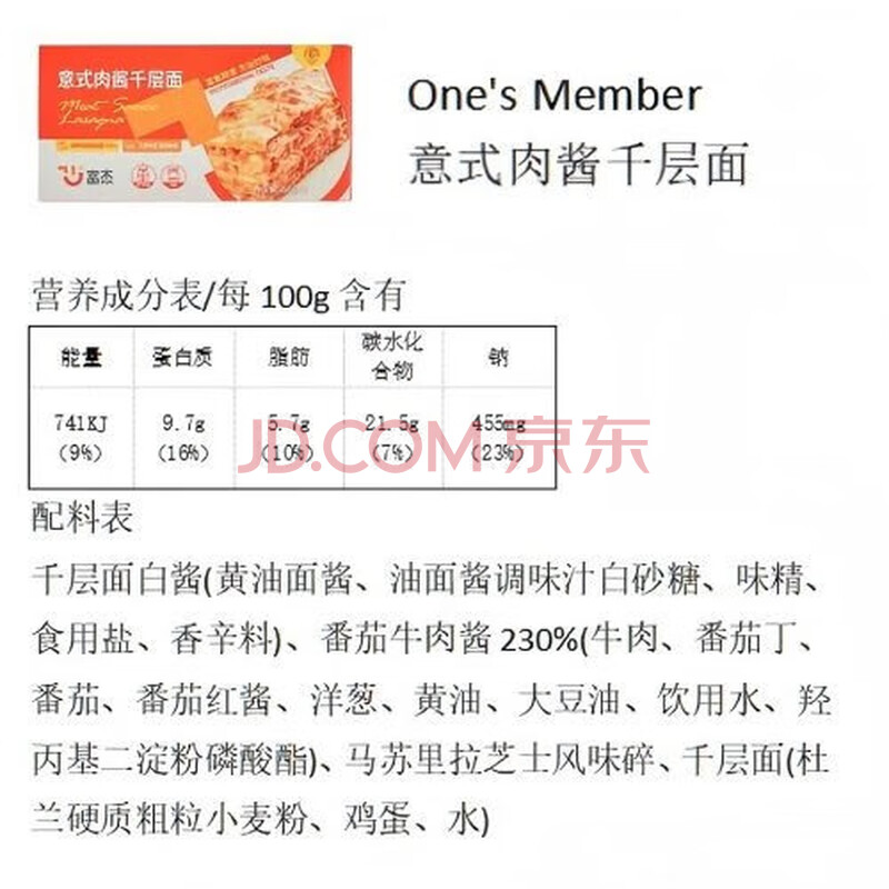 商品名称:富杰 意式肉酱千层面 250g*2 山姆同厂冷冻方便速食半成品儿童早餐