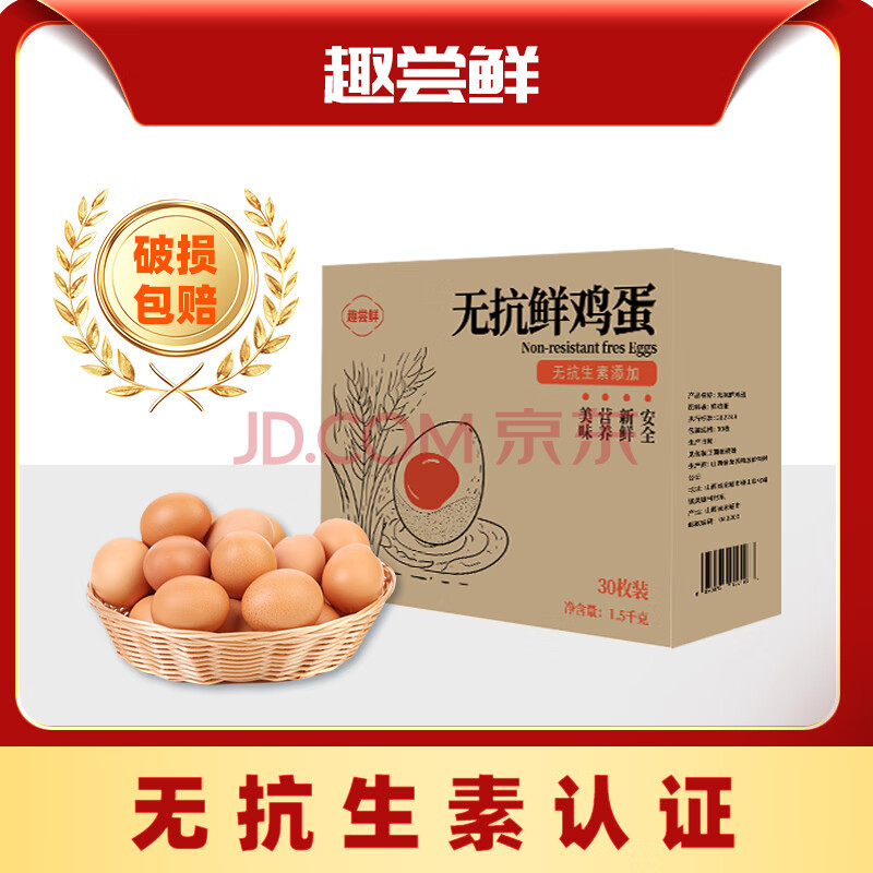 > 趣尝鲜无抗鲜鸡蛋30枚 净重3斤 源头直发 营养轻食
