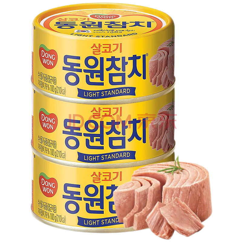 > 东远金枪鱼罐头 韩国进口 方便速食原味即食鱼肉100g*3罐应急储备物资