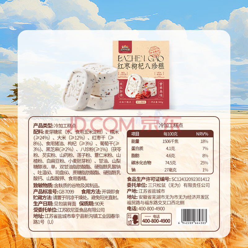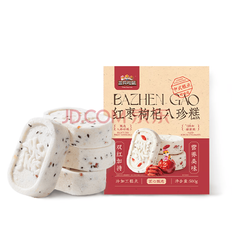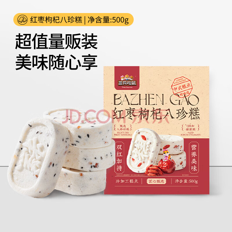 商品名称:三只松鼠枸杞红枣八珍糕500g 实糕米糕健康零食早餐食品传统中式糕点点心