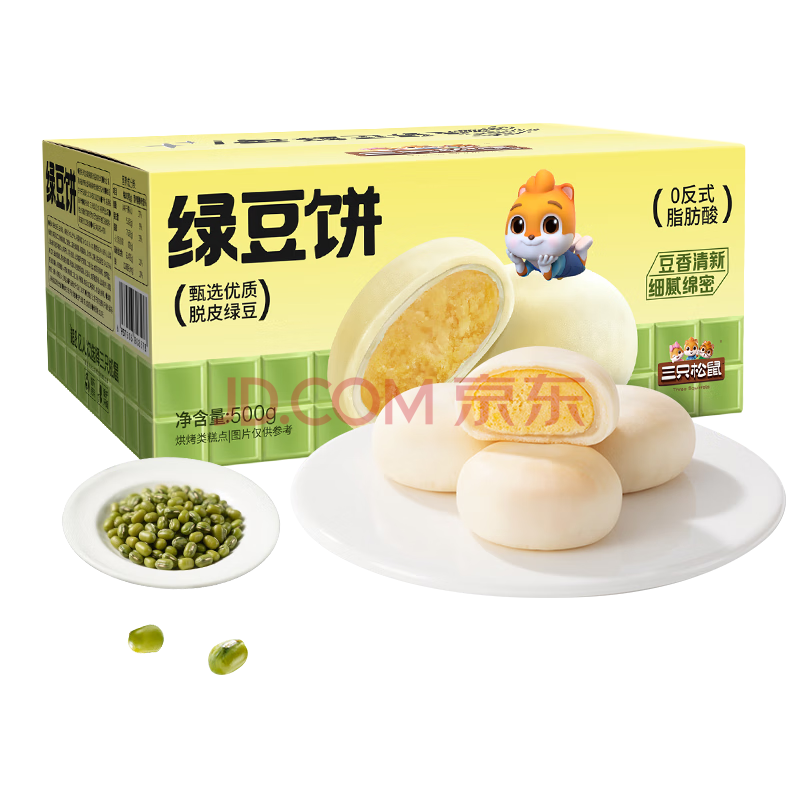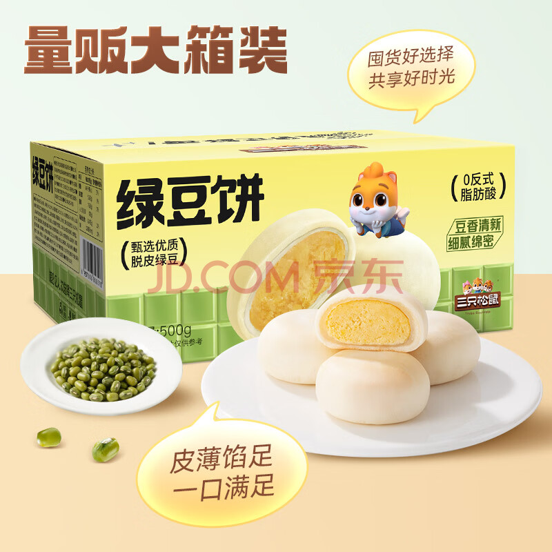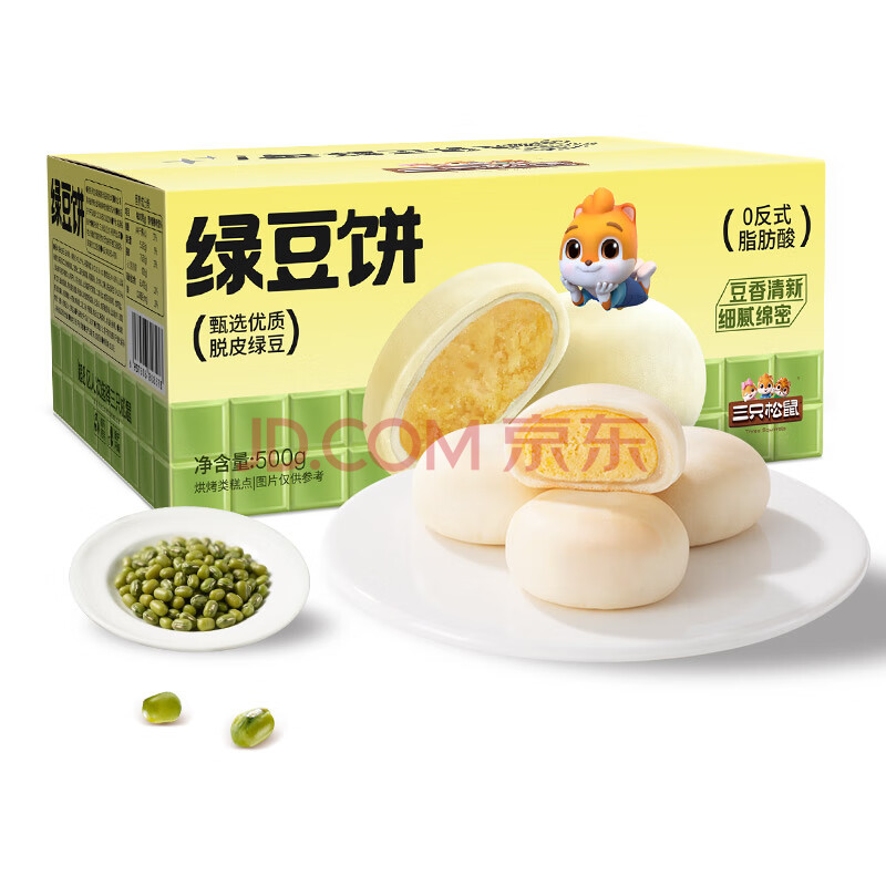 商品名称:三只松鼠绿豆饼500g 传统中式糕点绿豆糕特产点心解馋办公室下午茶小吃