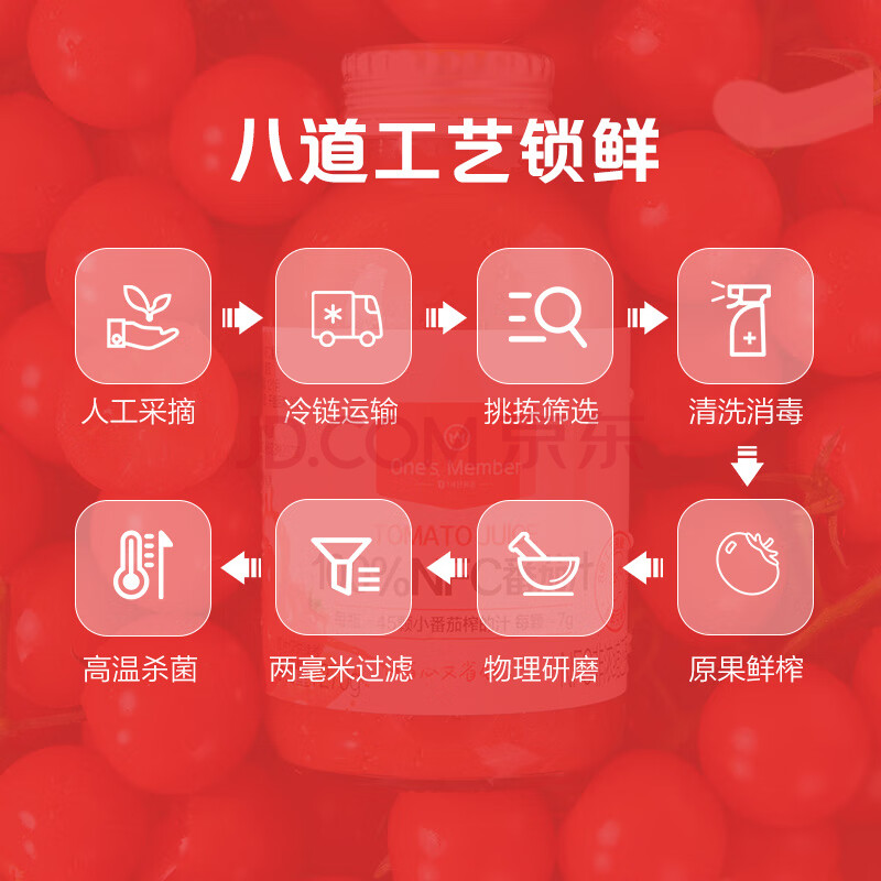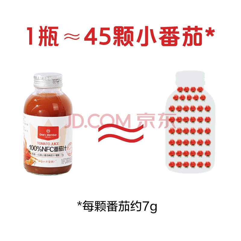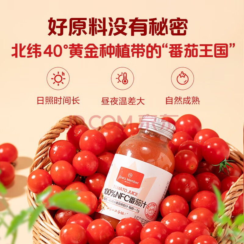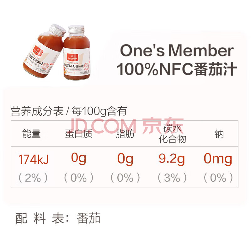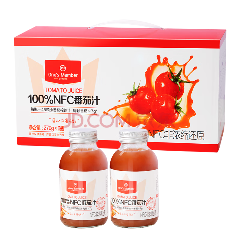 商品名称:One's Member 100%NFC番茄汁 鲜榨纯果汁果蔬汁饮料 270ml*6