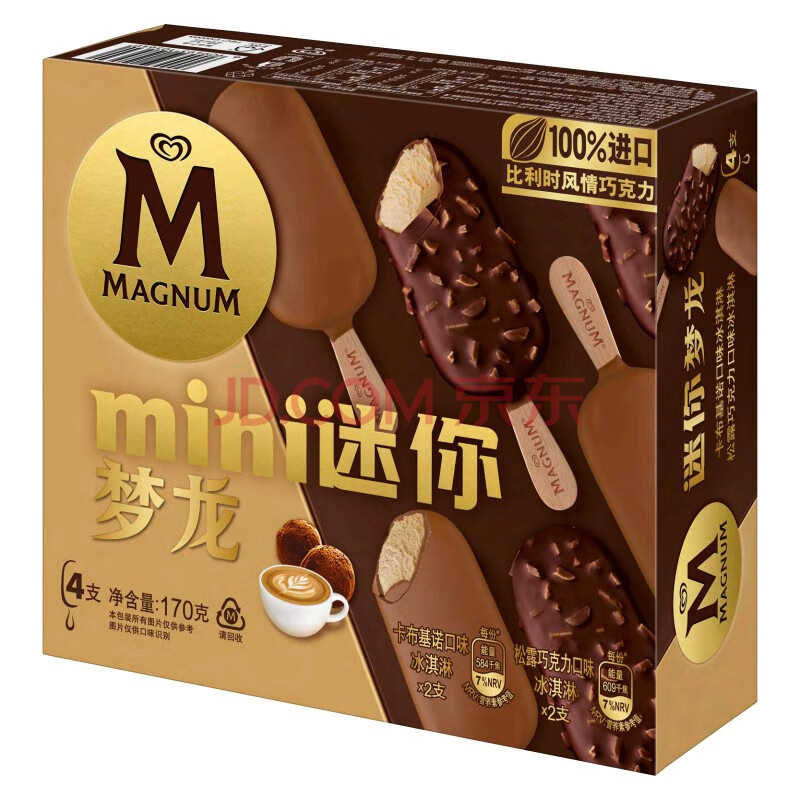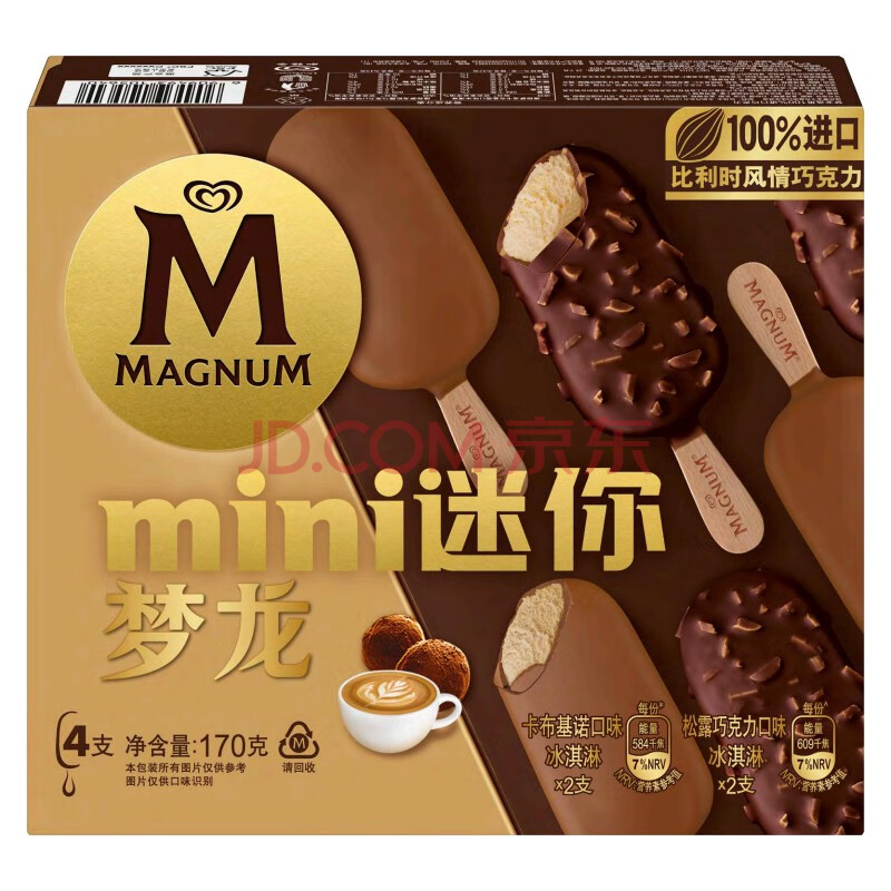 商品名称:梦龙【王嘉尔推荐】迷你梦龙松露巧克力43g*2+卡布基诺味冰淇淋42g*2
