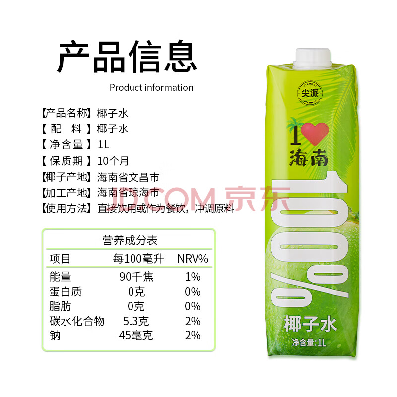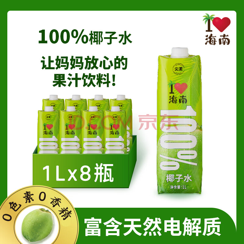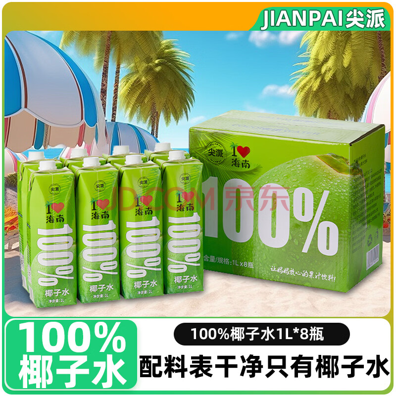 商品名称:尖派100%椰子水NFC果汁富含天然电解质大瓶椰汁水椰青饮料1L*8瓶整箱