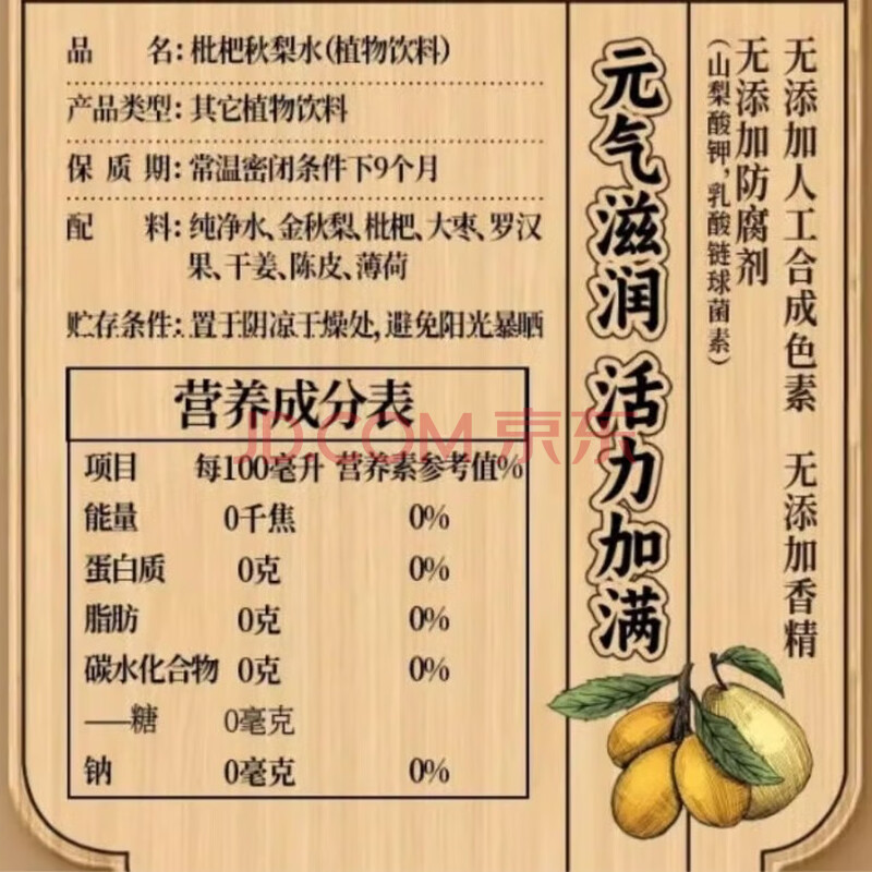 商品名称:豆丁日记枇杷秋梨水(植物饮料)350ml*24