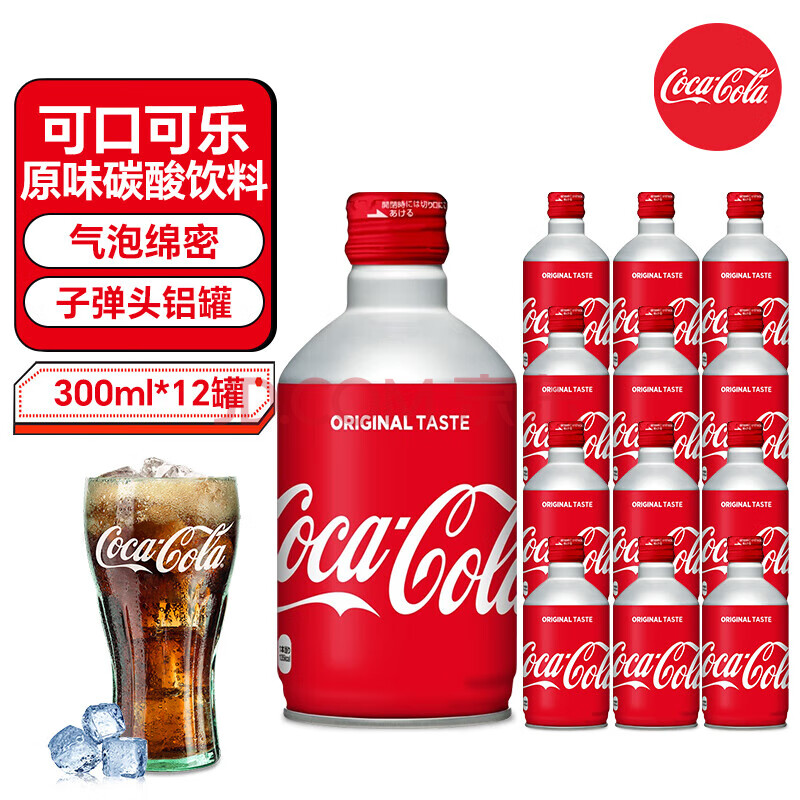 可口可乐(Coca-Cola)子弹头可乐日本原装进口日版可口可乐碳酸饮料汽水铝罐300ml*12罐