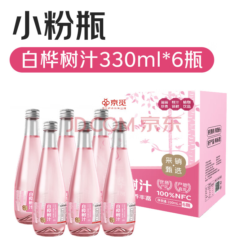 商品名称:京觅 白桦树汁小粉瓶320ml*6瓶 100%NFC原液0脂低卡0添加天然饮料