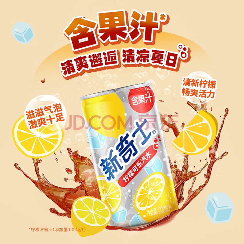 商品名称:屈臣氏(Watsons)新奇士柠檬可乐汽水含柠檬果汁碳酸饮料宅家聚餐200ml*24罐装整箱