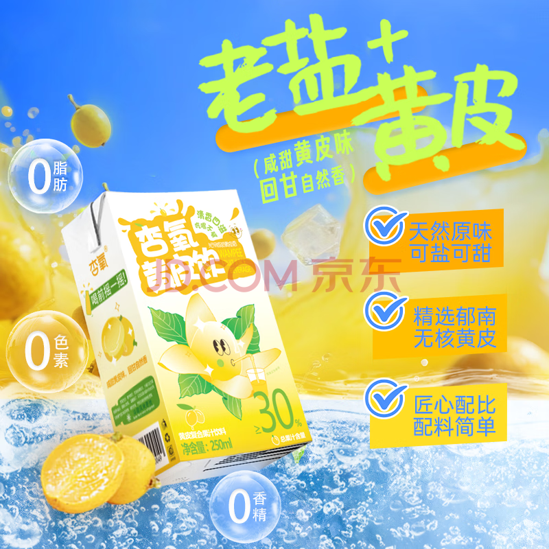 商品名称:杏氧黄皮饮果汁饮料0脂0添加礼盒装 250ml*16盒