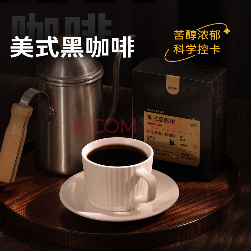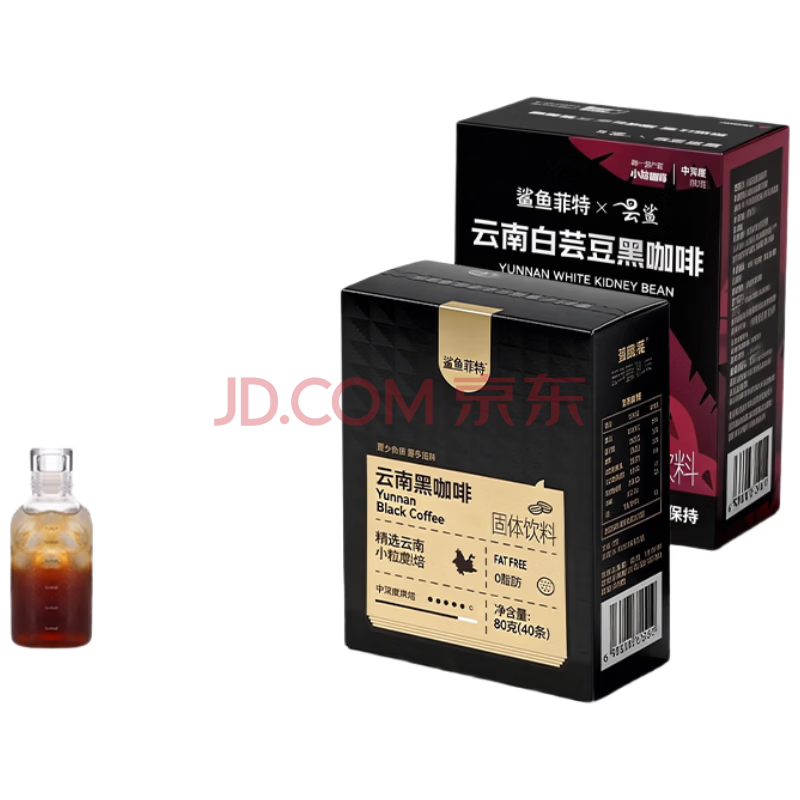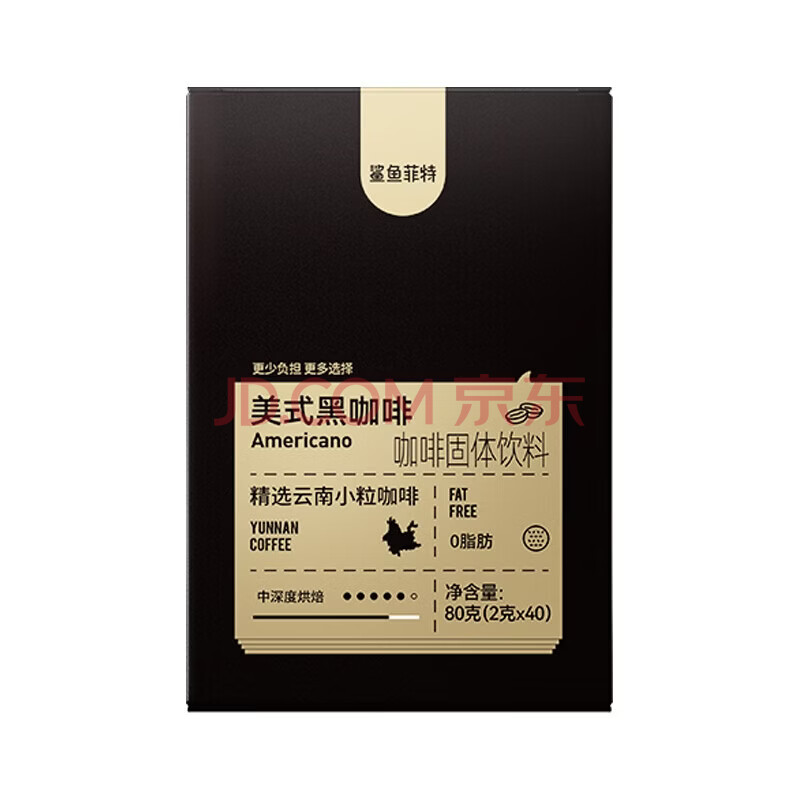 鲨鱼菲特黑咖啡粉即饮速溶纯0蔗糖0脂低卡健身燃减美式+白芸豆2g*120条