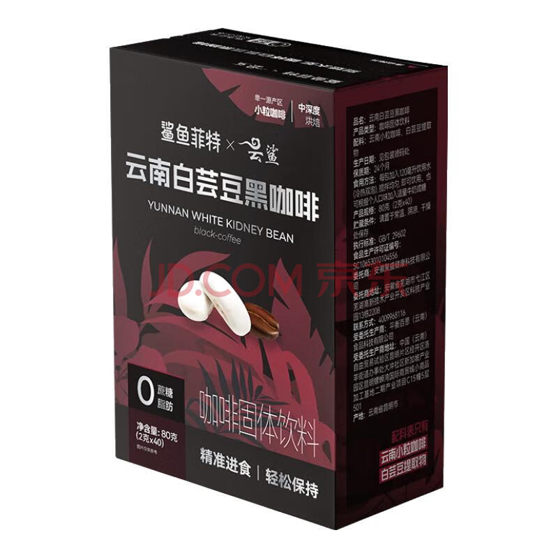 商品名称:鲨鱼菲特黑咖啡粉即饮速溶纯0蔗糖0脂低卡健身燃减美式+白芸豆2g*120条